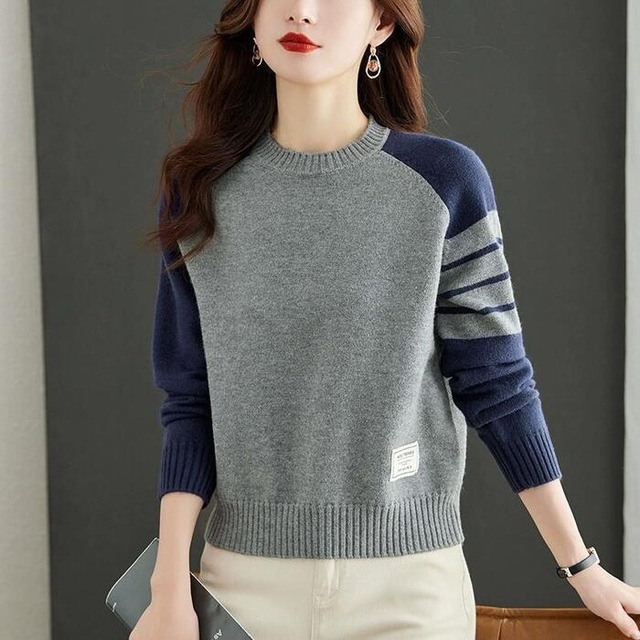 全4色 大きいサイズ 体型カバー トップス カットソー ニット プルオーバー セーター ラグラン バイカラー エレガント レディース 大人 可愛い きれいめ カジュアル フェミニン 長袖 ライン シンプル おしゃれ レッド 赤 グレー ピンク ベージュ 春 秋 冬 20代 30代 40代 50代