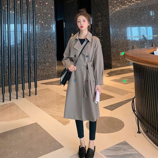 全2色 アウター コート トレンチコート ジャケット テーラード 羽織り レディース エレガント きれいめ カジュアル 長袖 大人 可愛い ミディ丈 フェミニン シンプル おしゃれ 体型カバー 韓国 グレー ブラック 黒 春 秋 冬 20代 30代 40代 50代