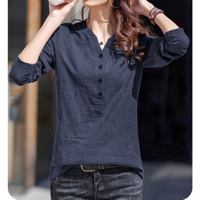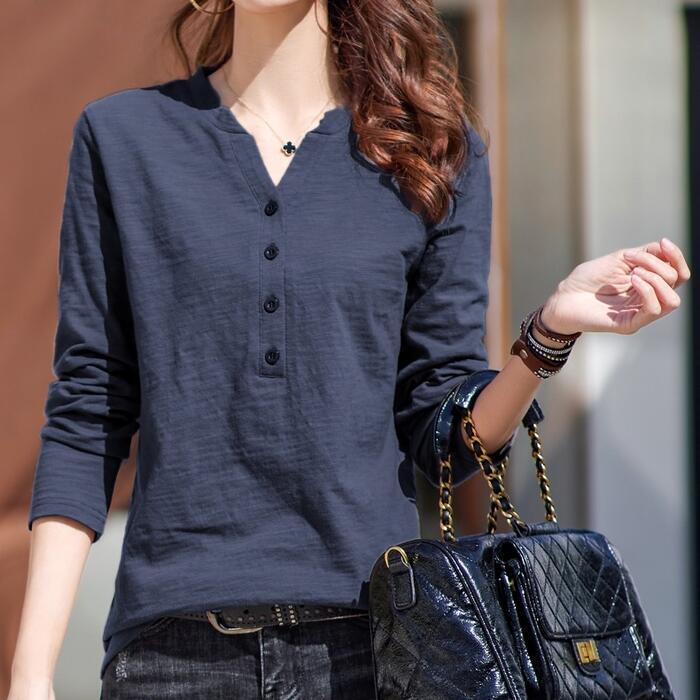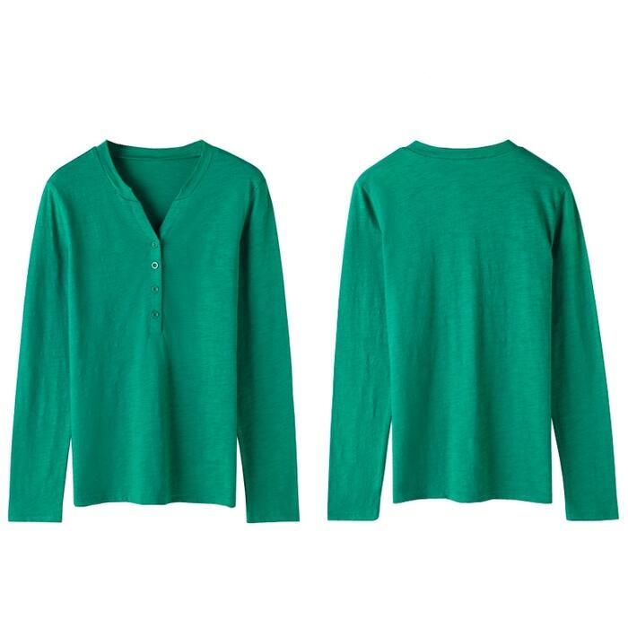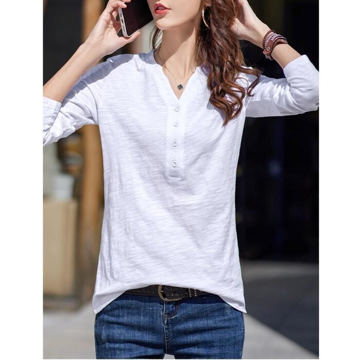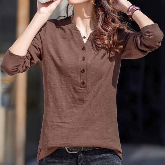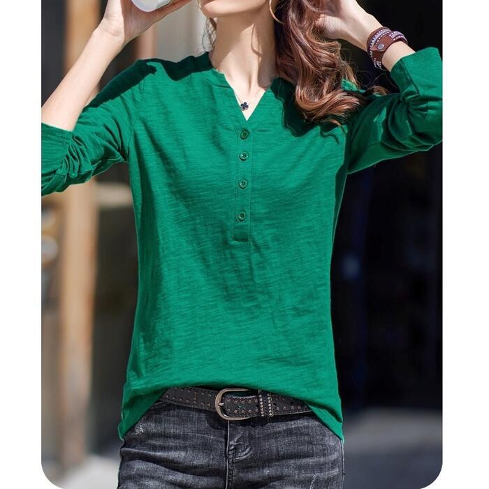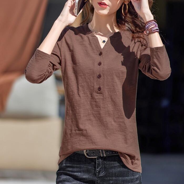 全4色 大きいサイズ 体型カバー トップス シャツ ブラウス Tシャツ カットソー エレガント レディース 大人 可愛い ヘンリーネック Vネック きれいめ カジュアル フェミニン ナチュラル シンプル グリーン 緑 ブラウン グレー ホワイト 白 春 秋 冬 20代 30代 40代 50代