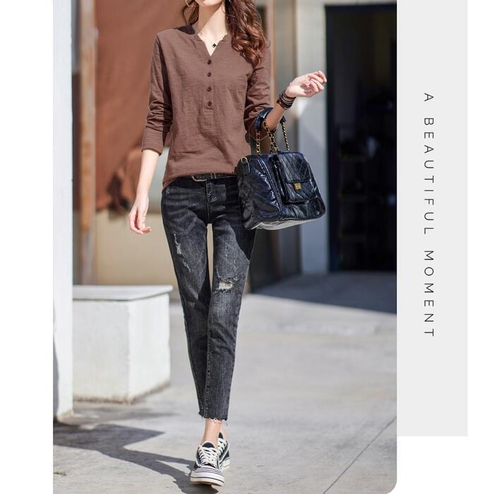 Vネックがフェイスラインをすっきり見せてくれます。