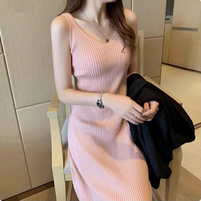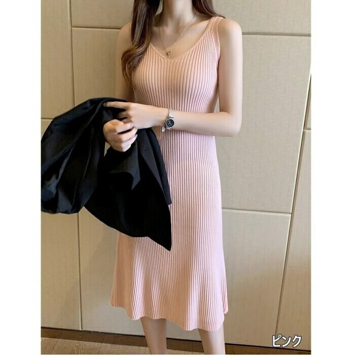 全6色 大きいサイズ 体型カバー シンプル ワンピース ドレス ニット リブ キャミワンピ レディース エレガント きれいめ カジュアル ミモレ丈 大人 可愛い ノースリーブ Aライン フェミニン おしゃれ ピンク ベージュ ブラウン ホワイト 白 ブラック 黒 春 夏 秋 20代 30代 40代 50代