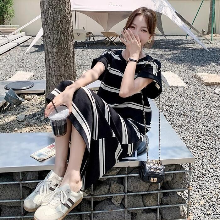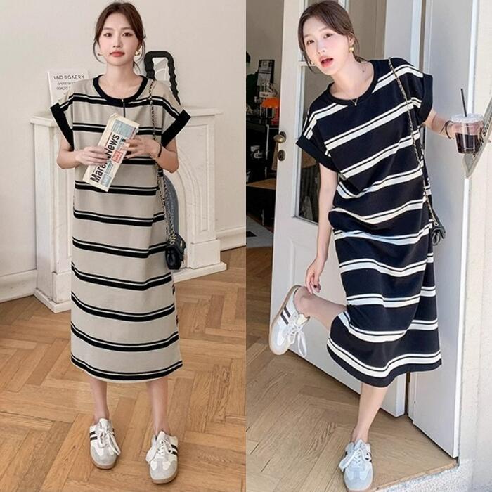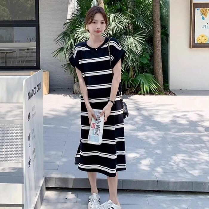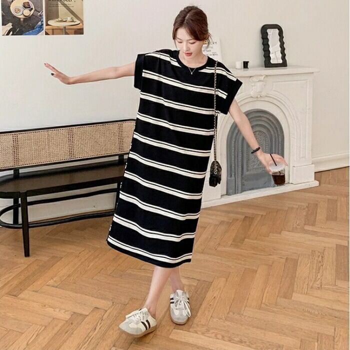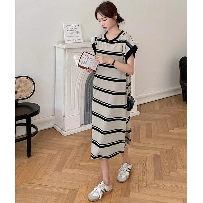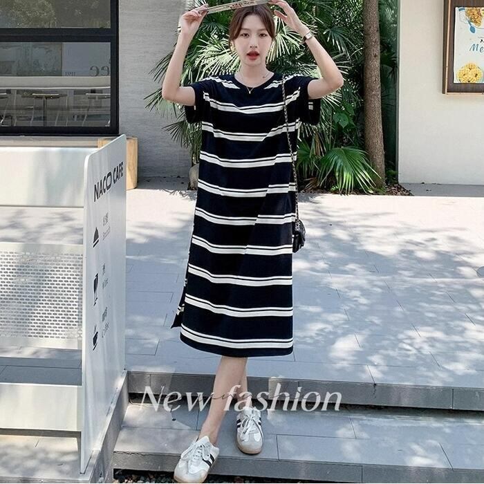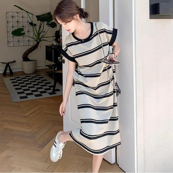 ゆるっと着こなせるボーダーTシャツワンピース。