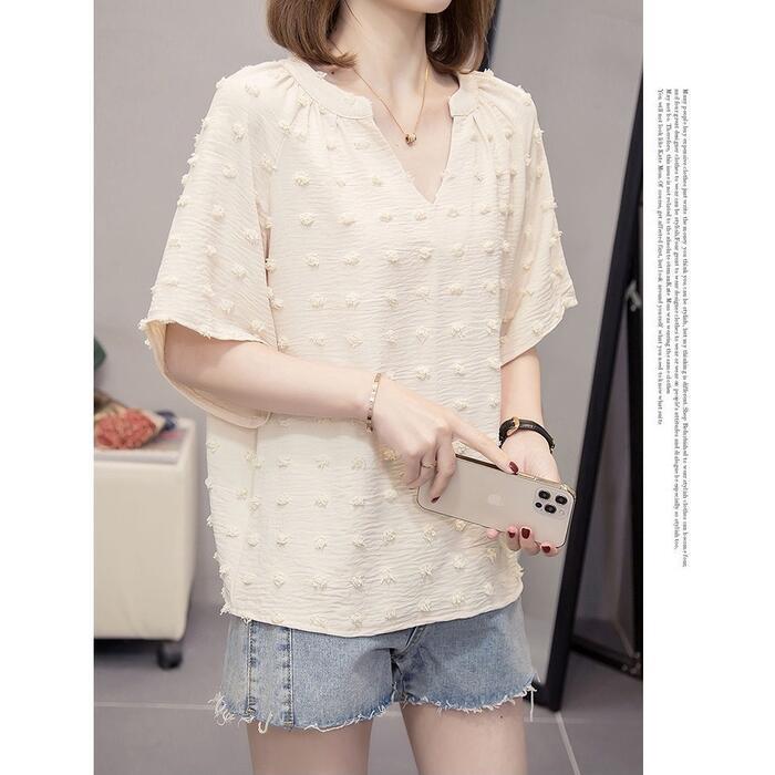 立体的なドットデザインが可愛い半袖シフォンブラウス。