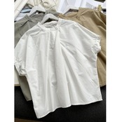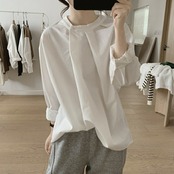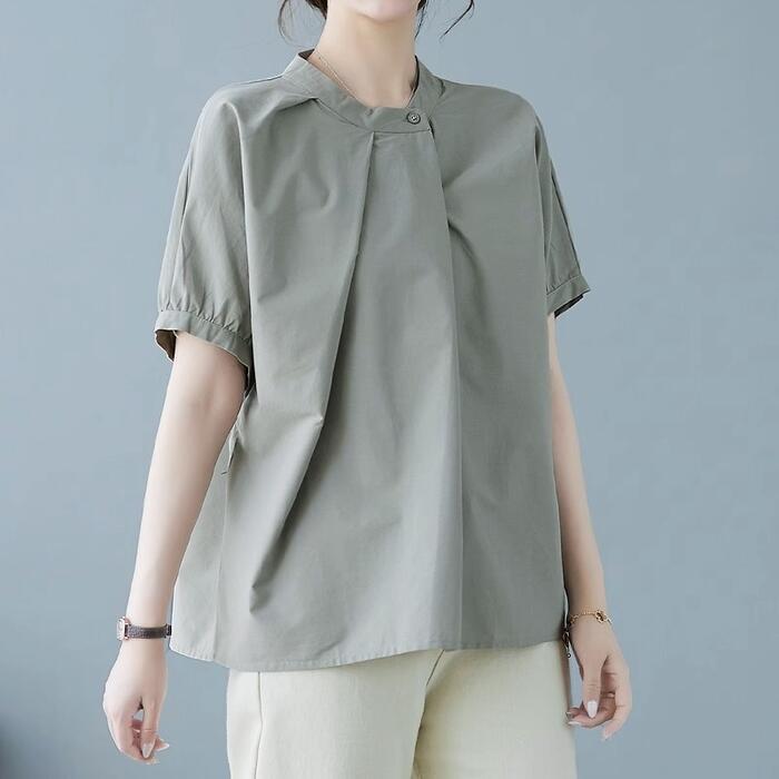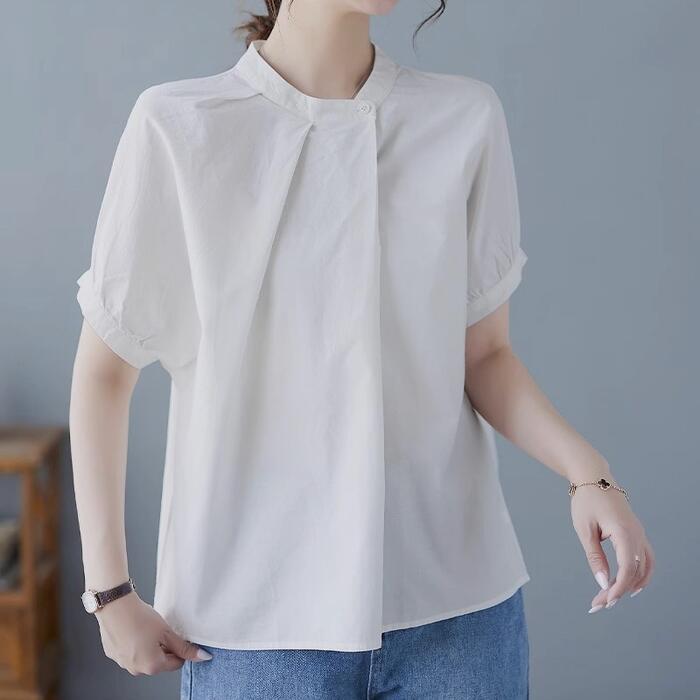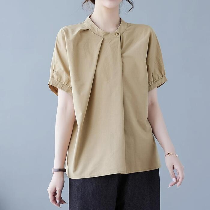 全2種4色 大きいサイズ ゆったり 体型カバー トップス シャツ ブラウス タック プルオーバー エレガント レディース 大人 可愛い パフスリーブ 半袖 長袖 きれいめ カジュアル フェミニン ナチュラル シンプル グレー ホワイト 白 ベージュ ブラック 黒 春 秋 夏 20代 30代 40代 50代