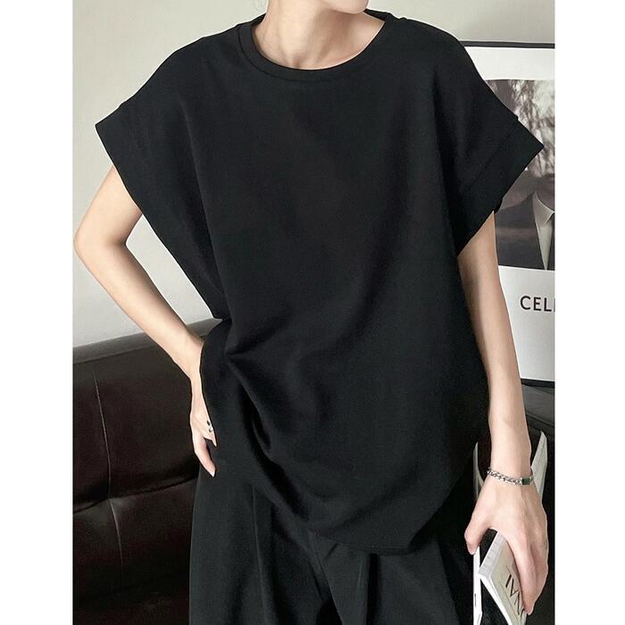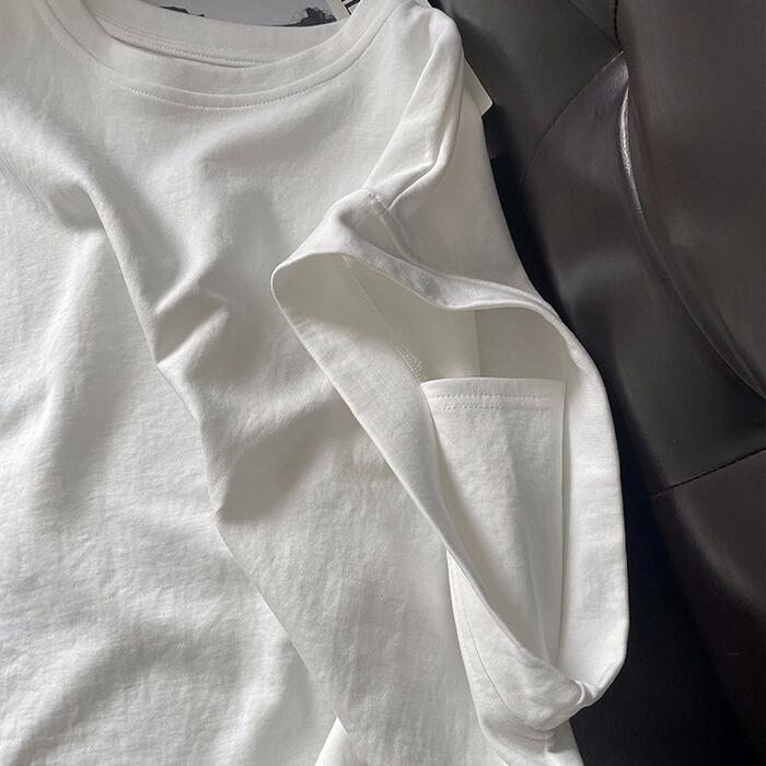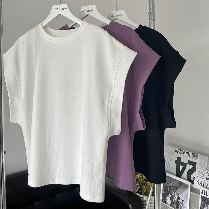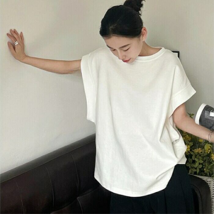 肩の切替のないゆったりとしたシルエットの半袖Tシャツ。