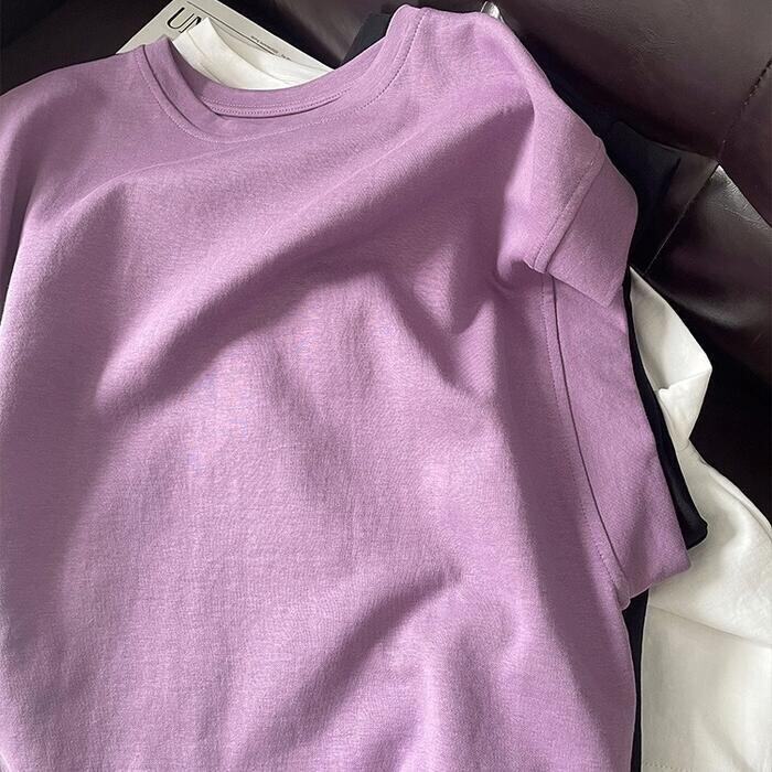 全3色 大きいサイズ 体型カバー トップス Tシャツ カットソー プルオーバー エレガント レディース 大人 可愛い 半袖 きれいめ カジュアル フェミニン オーバーサイズ ビッグシルエット ナチュラル 韓国 ホワイト 白 ブラック 黒 パープル 紫 春 秋 夏 20代 30代 40代 50代
