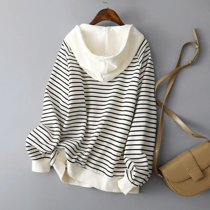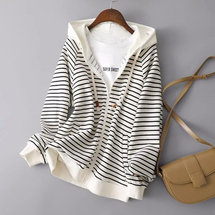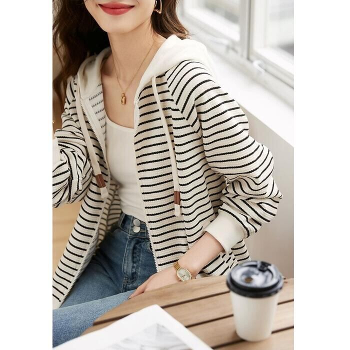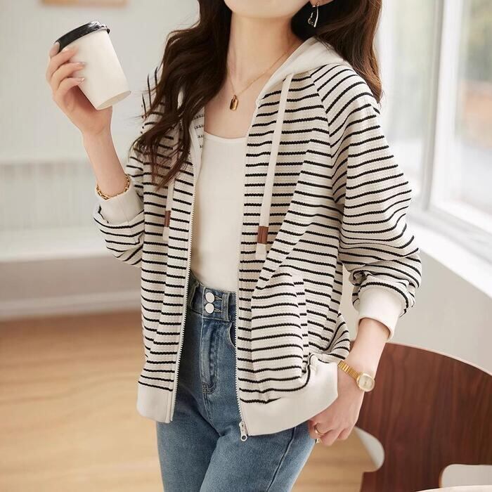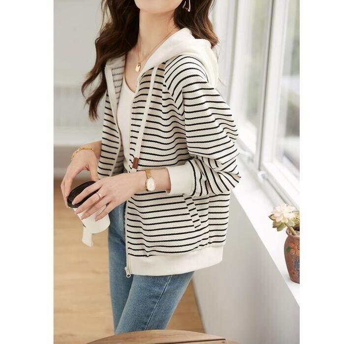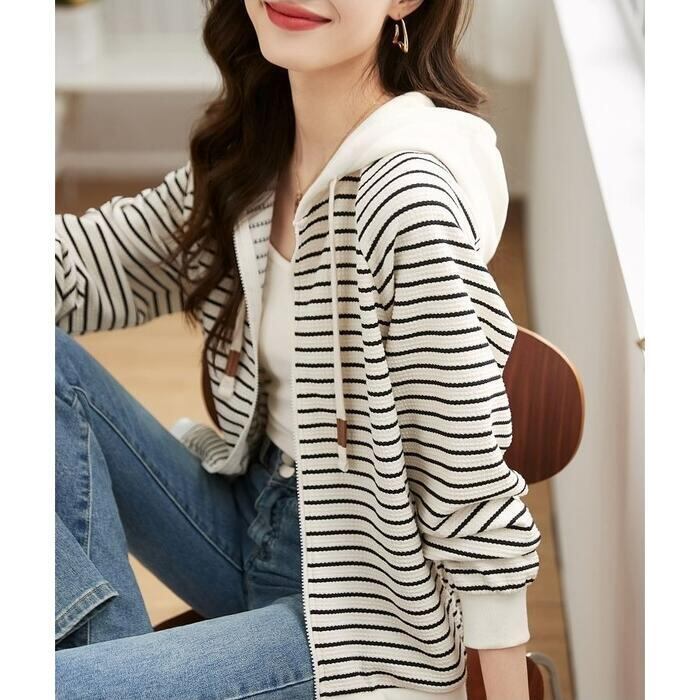 大きいサイズ 体型カバー トップス パーカー フーディ アウター カーディガン ボーダー 羽織り ジップアップ エレガント レディース 大人 可愛い 長袖 おしゃれ きれいめ カジュアル フェミニン シンプル マリン ナチュラル ベージュ ブラック 黒 春 秋 夏 20代 30代 40代 50代