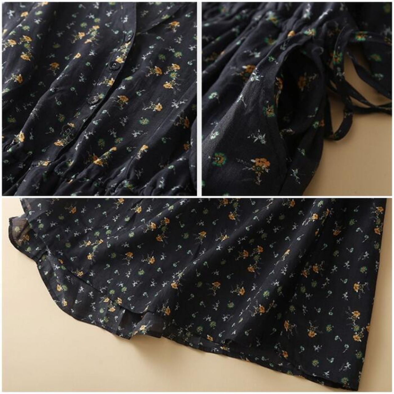 落ち着いた小花柄が可愛いワンピース。