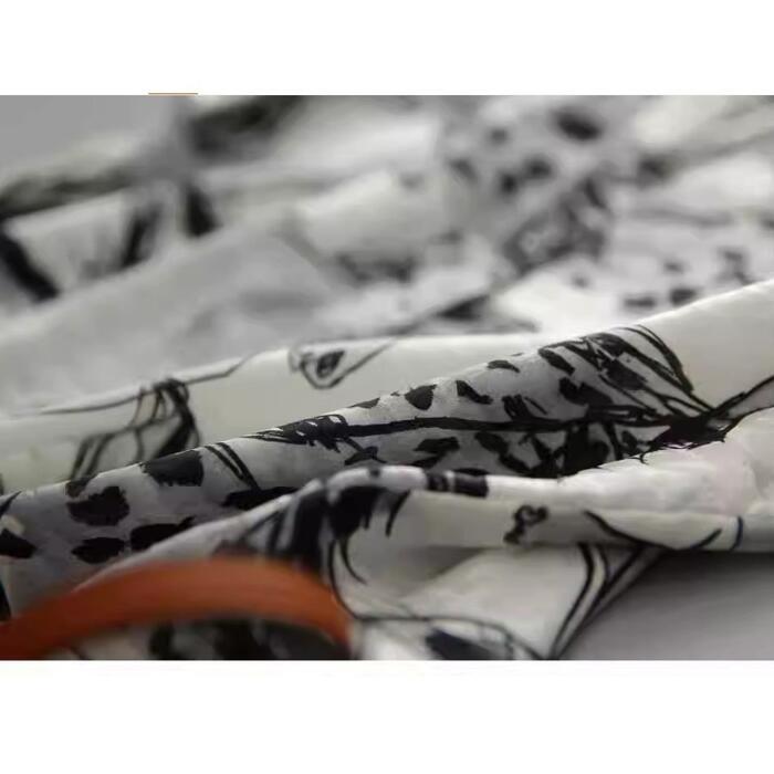 水墨画風のプリント柄が目を惹く半袖シャツ。