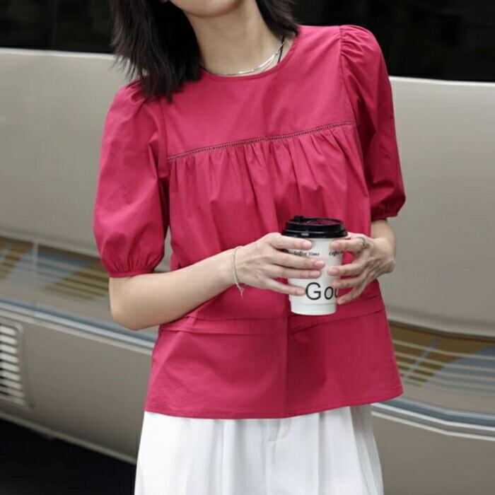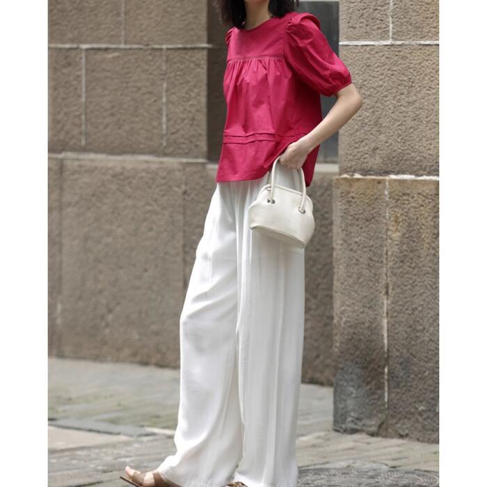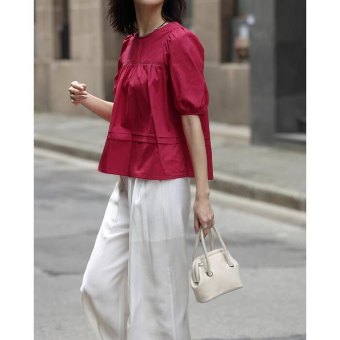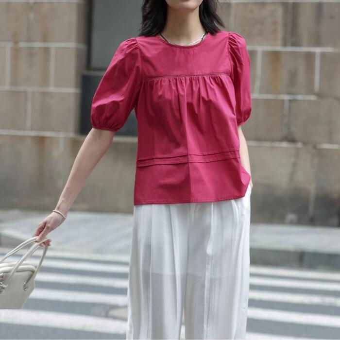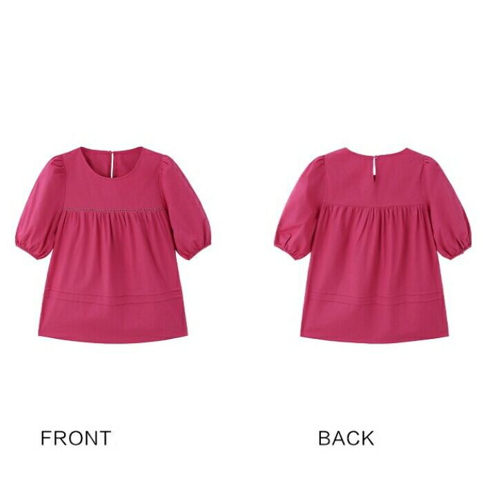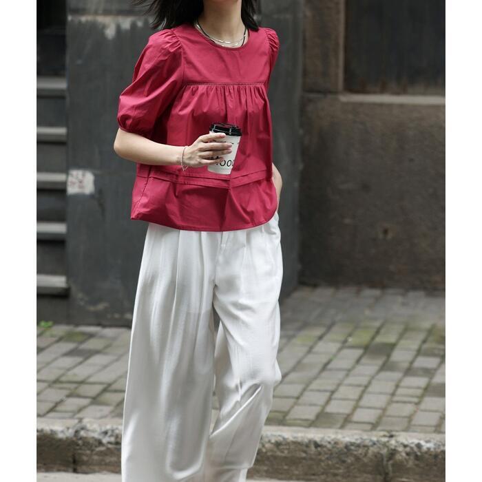 清涼感のある肌触りと涼しい着心地のパフスリーブブラウス。