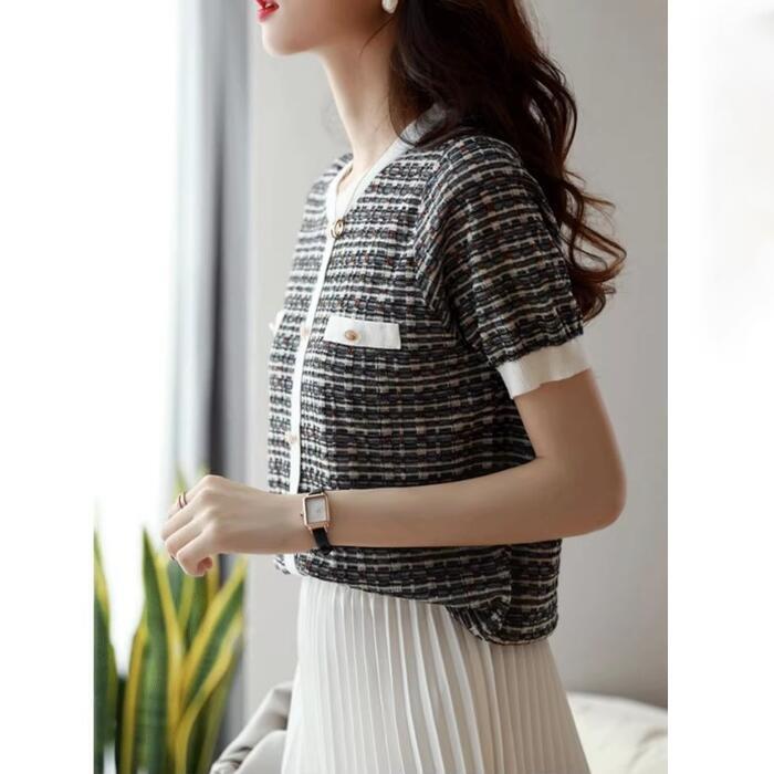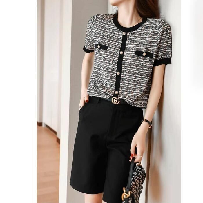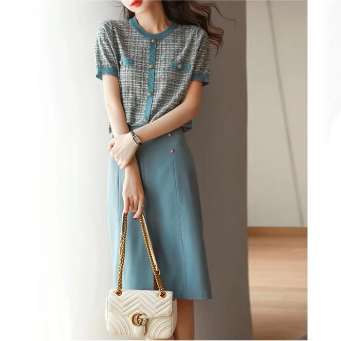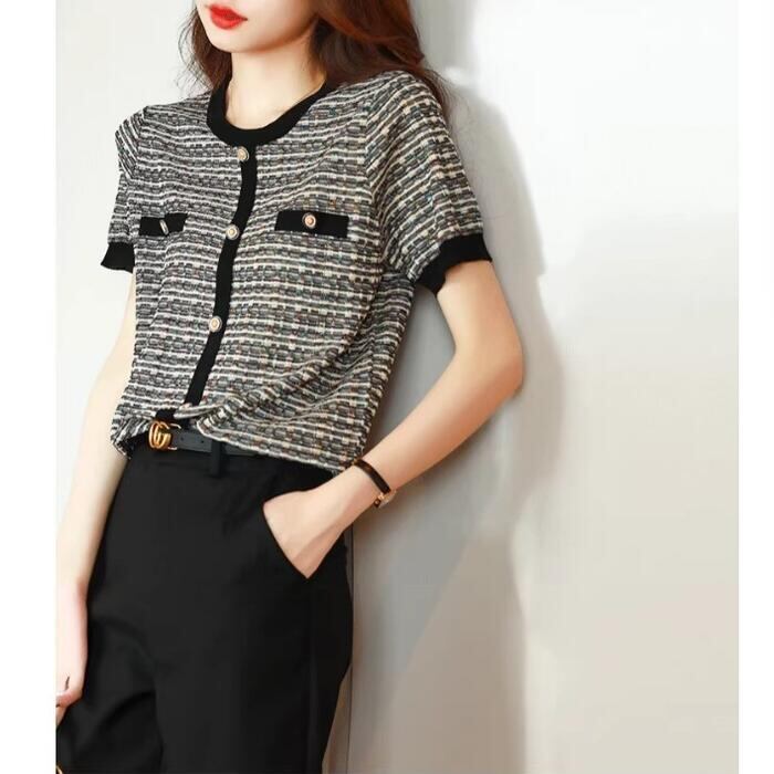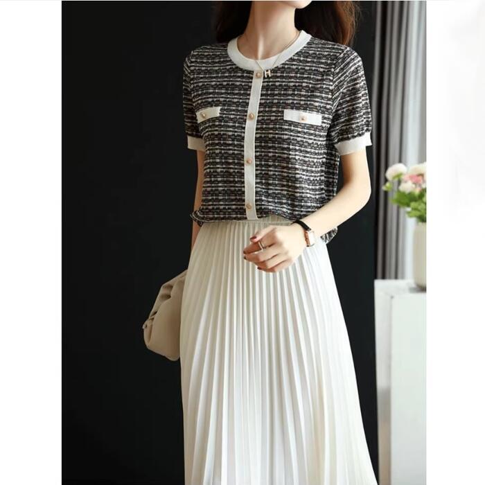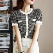 全3色 大きいサイズ ナチュラル サマーニット トップス ニット プルオーバー カットソー パイピング エレガント レディース 大人 可愛い 半袖 きれいめ カジュアル フェミニン 上品 通勤 オフィス おしゃれ ブルー 青 ホワイト 白 ブラック 黒 春 秋 夏 20代 30代 40代 50代