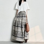 ノスタルジックなプリント柄がおしゃれなロングスカート。