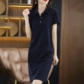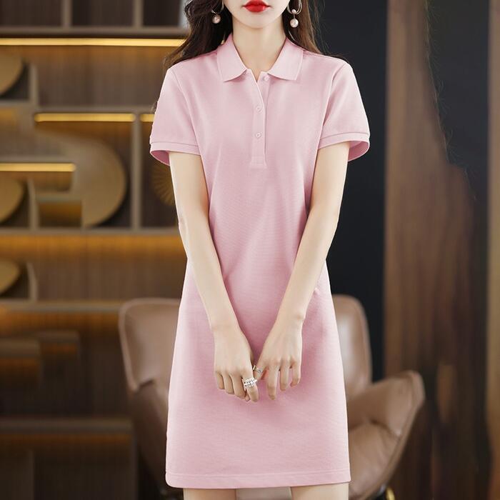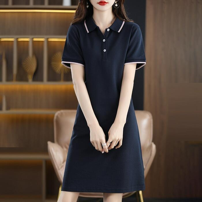コンパクトな襟デザインで、爽やかな印象で着こなせるポロシャツワンピース。