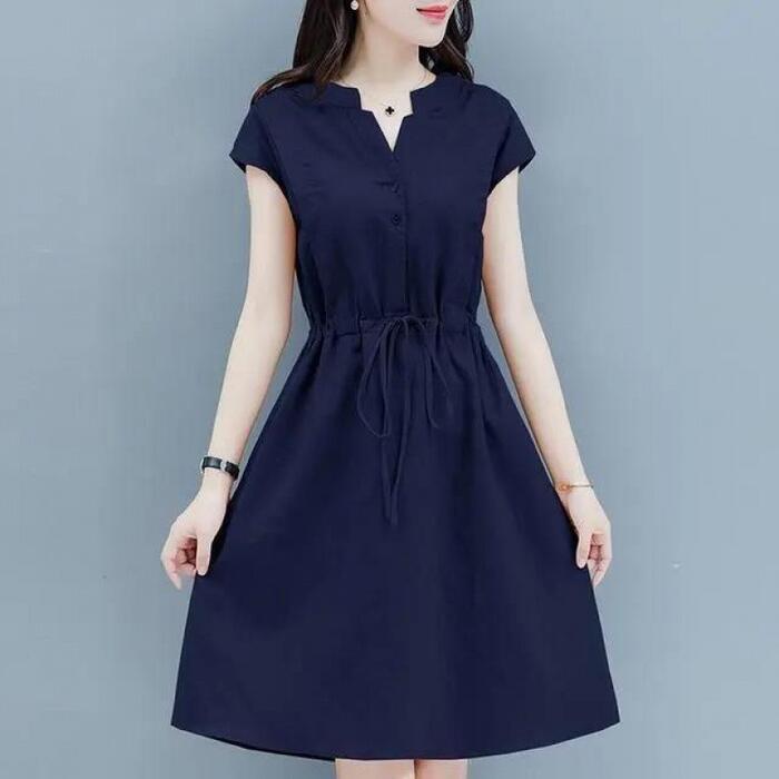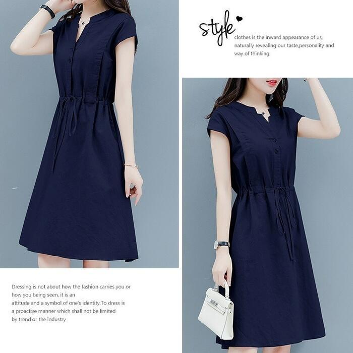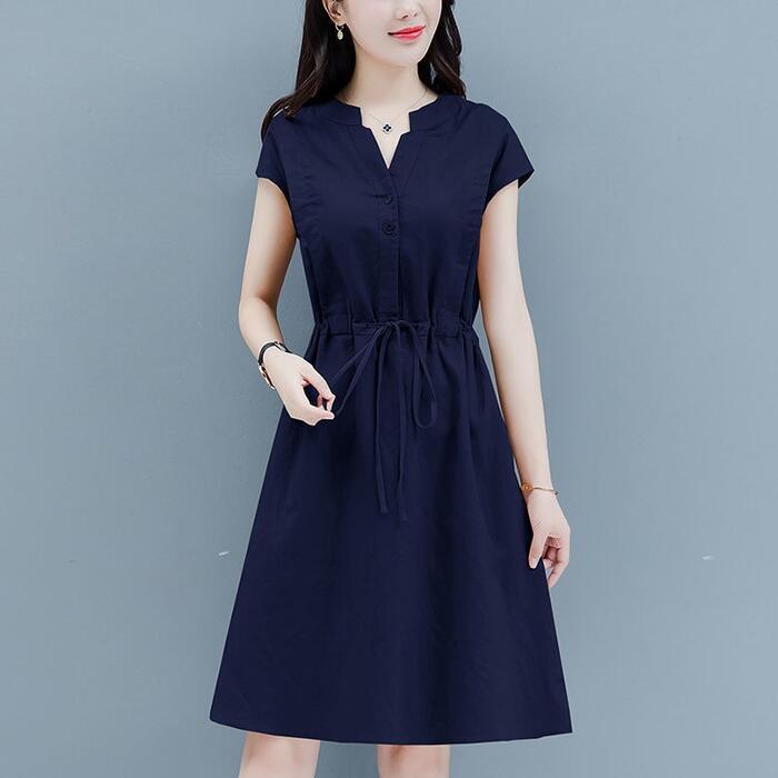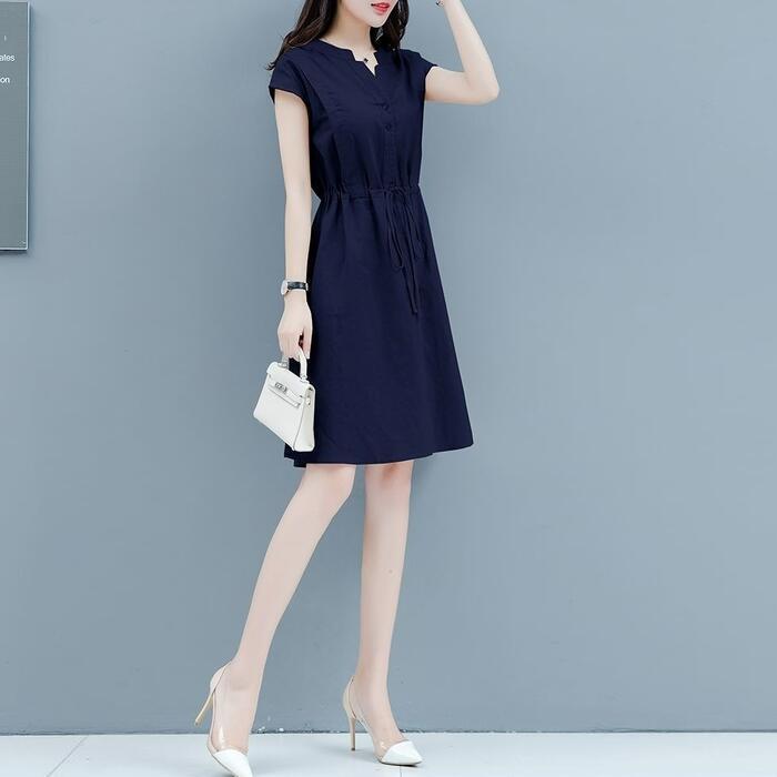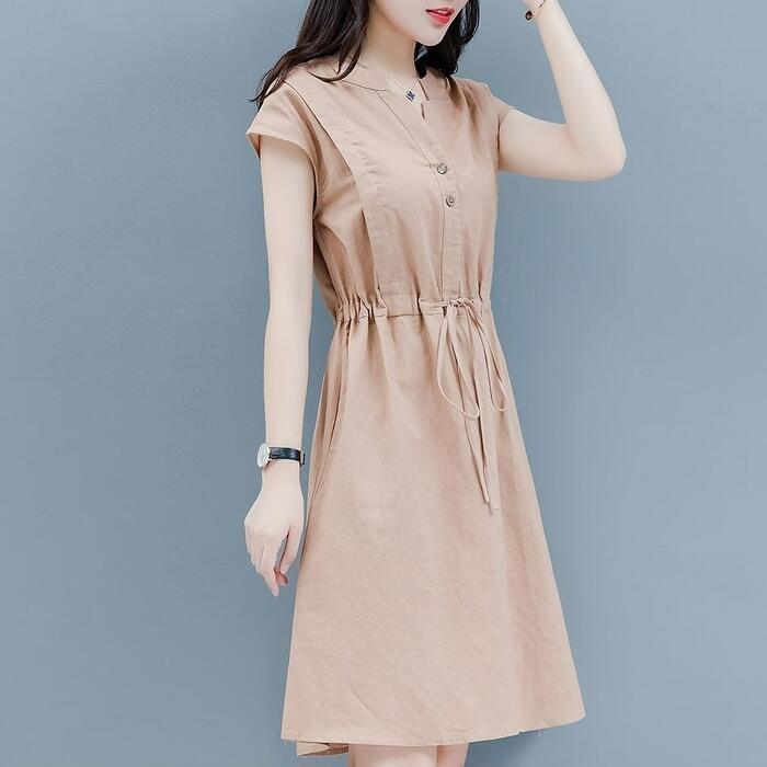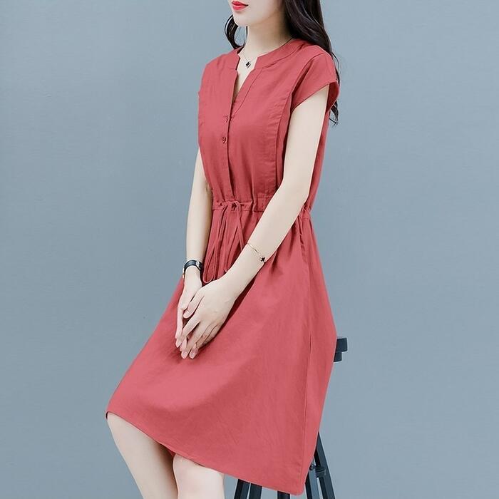 全3色 大きいサイズ 体型カバー シンプル おしゃれ ワンピース ドレス 綿麻 コットン リネン プルオーバー レディース エレガント きれいめ カジュアル 半袖 ミディ丈 ひざ丈 ドロスト 大人 可愛い フェミニン ナチュラル ネイビー レッド 赤 ベージュ 春 夏 秋 20代 30代 40代 50代