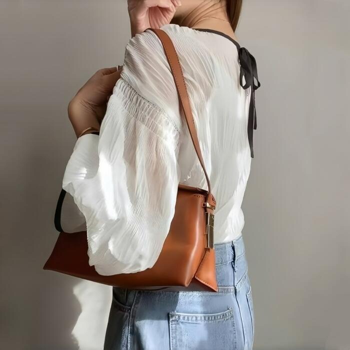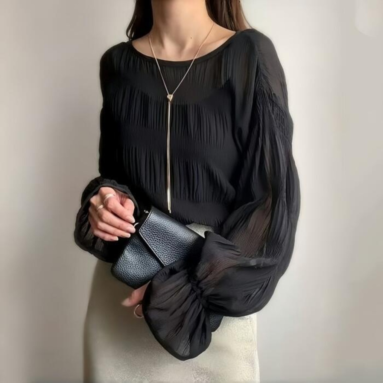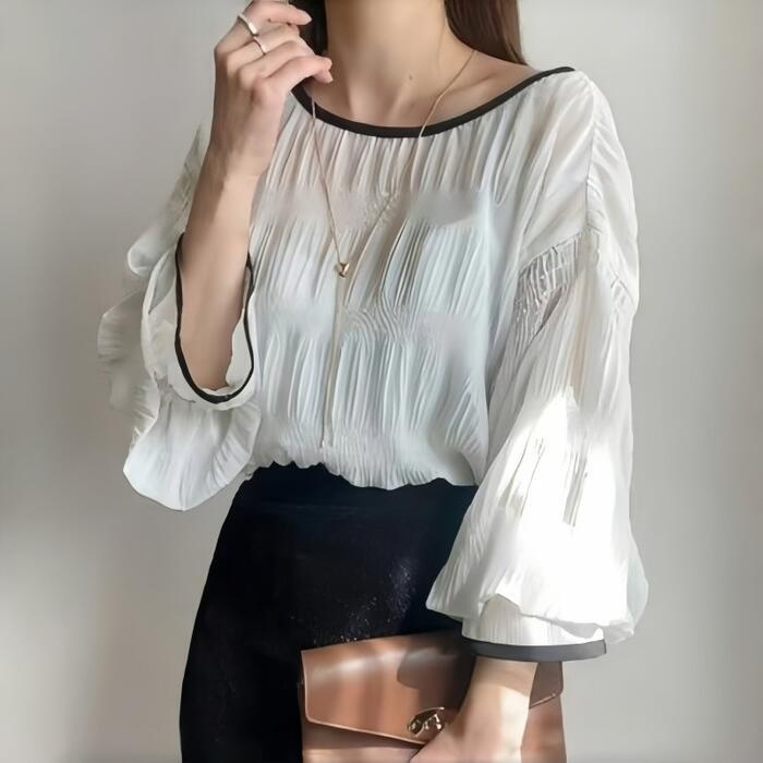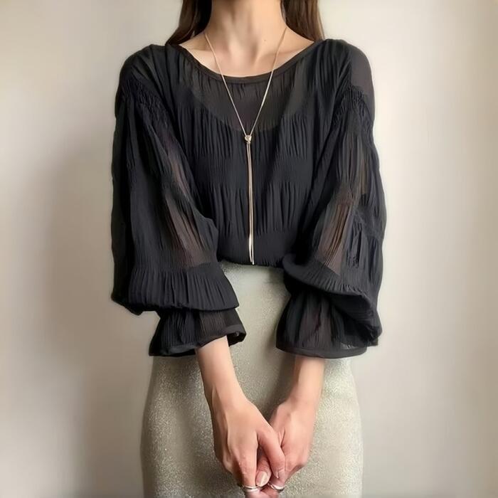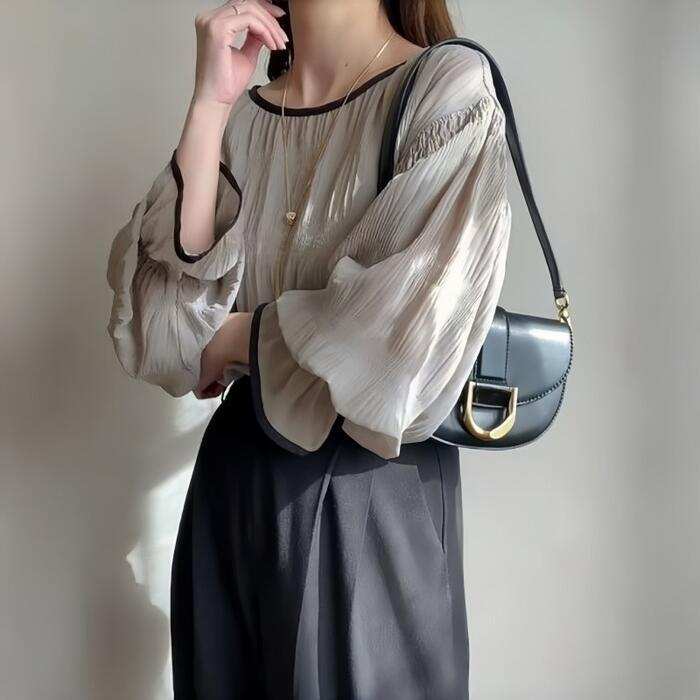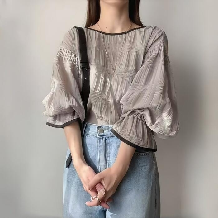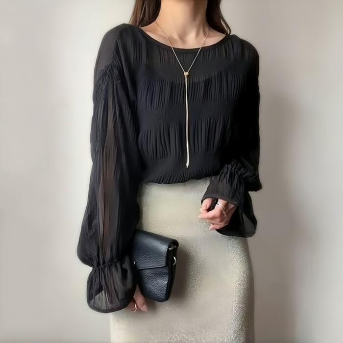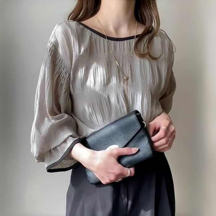 クシュっとした生地感が魅力の長袖ブラウス。