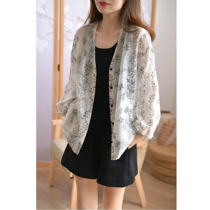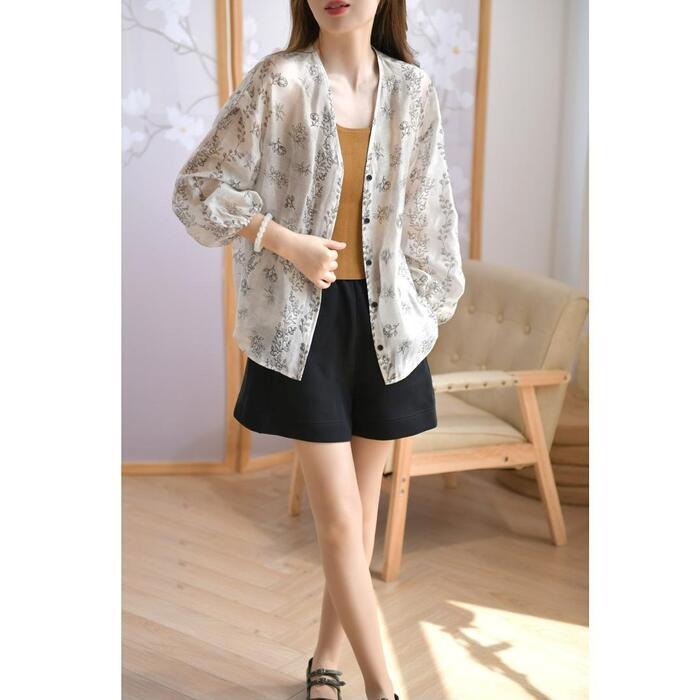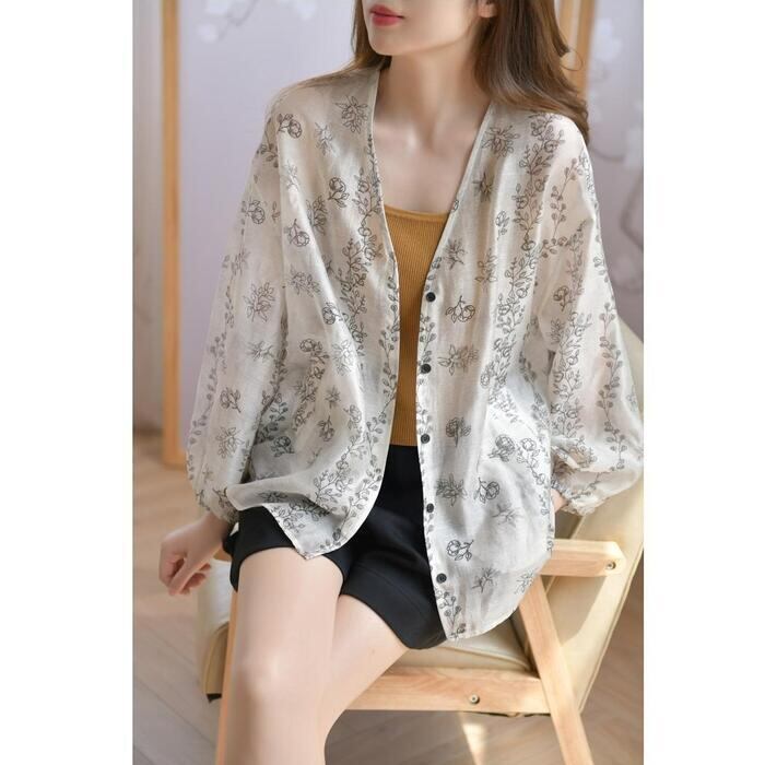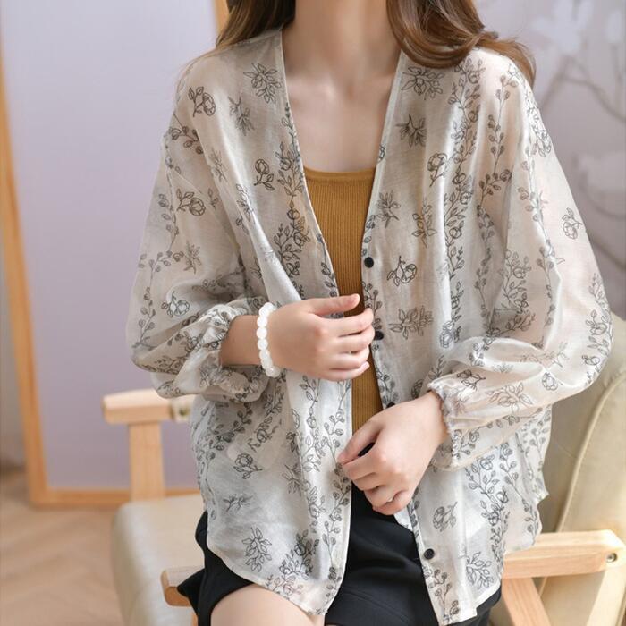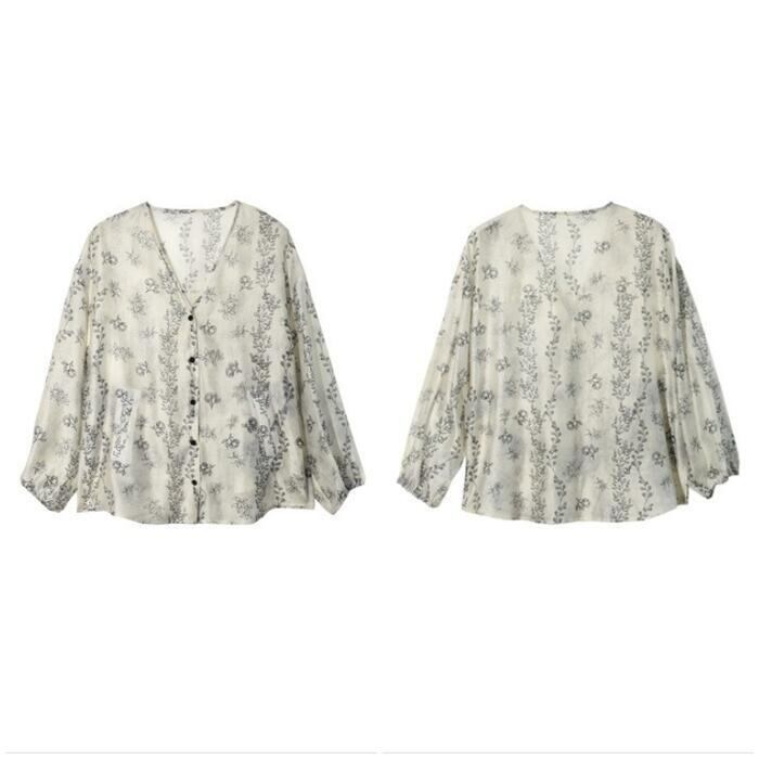 大きいサイズ 体型カバー トップス ブラウス シャツ 花柄 フラワー ボタニカル プリント プルオーバー エレガント レディース 大人 可愛い 長袖 きれいめ カジュアル フェミニン おしゃれ 透け感 羽織り 薄手 Vネック グレー 春 秋 夏 20代 30代 40代 50代