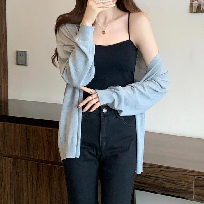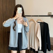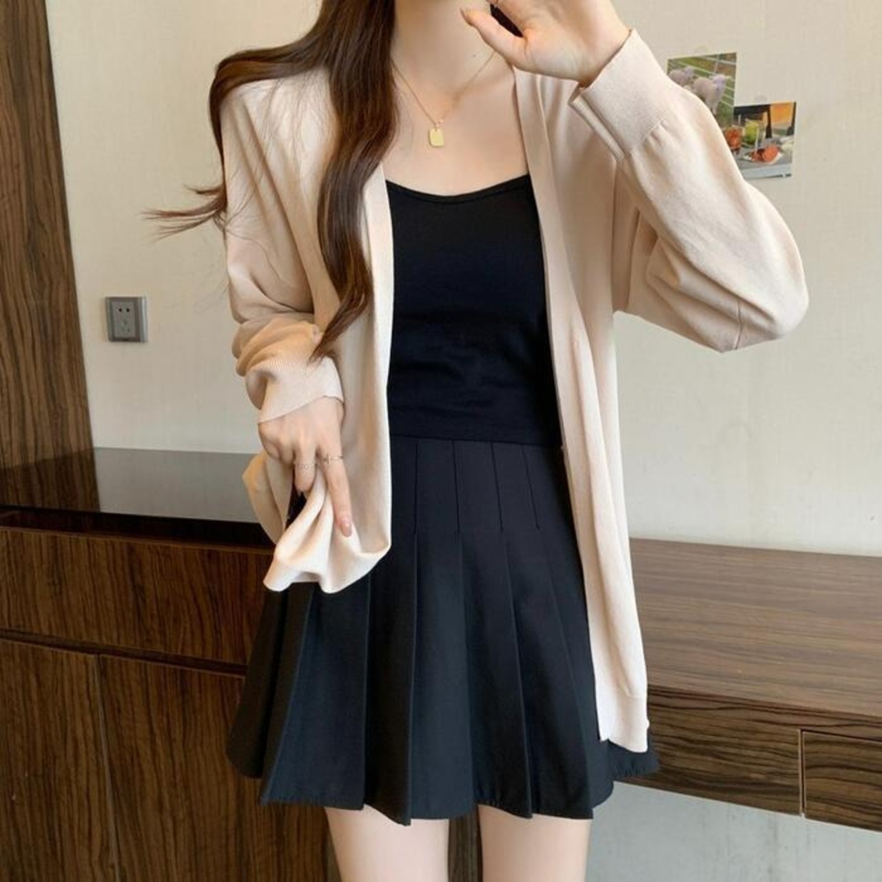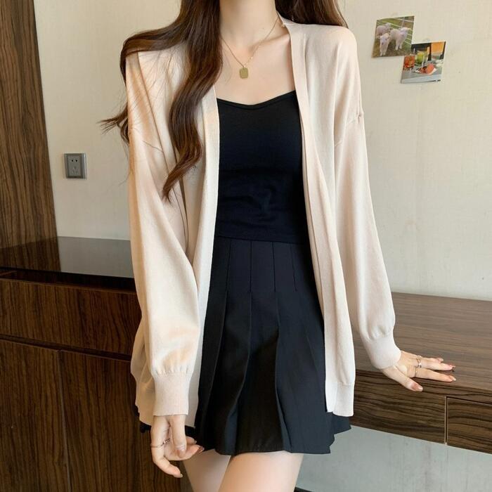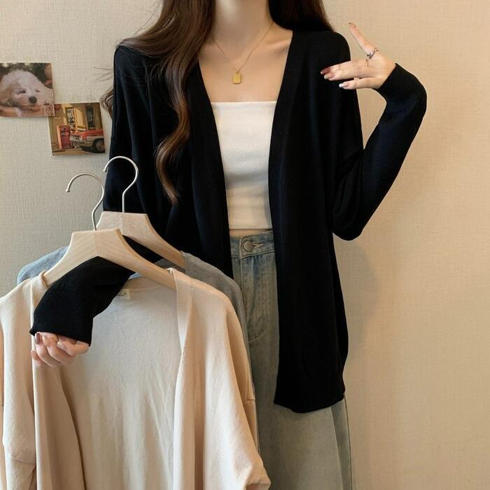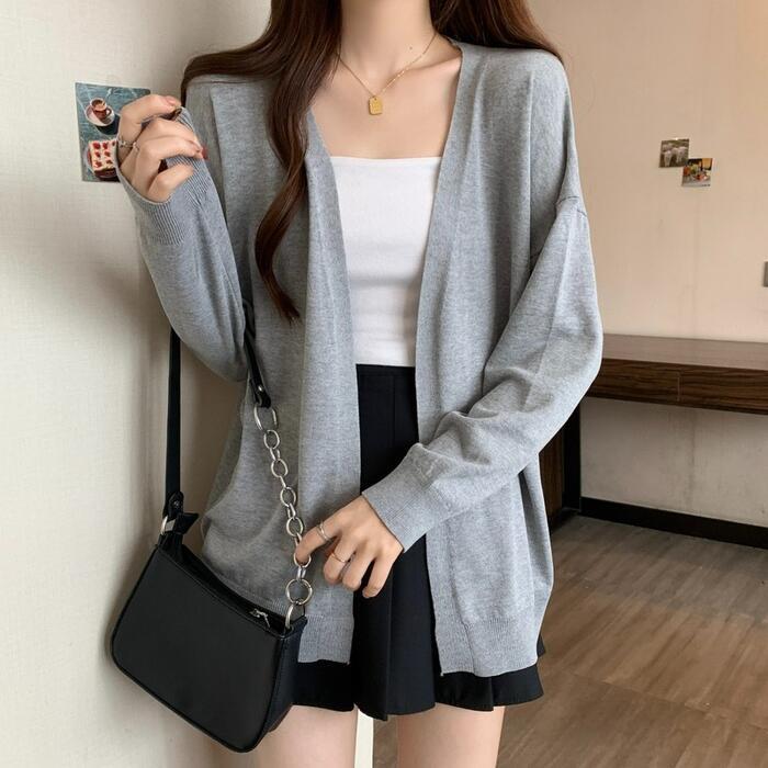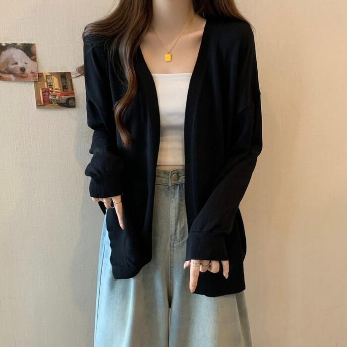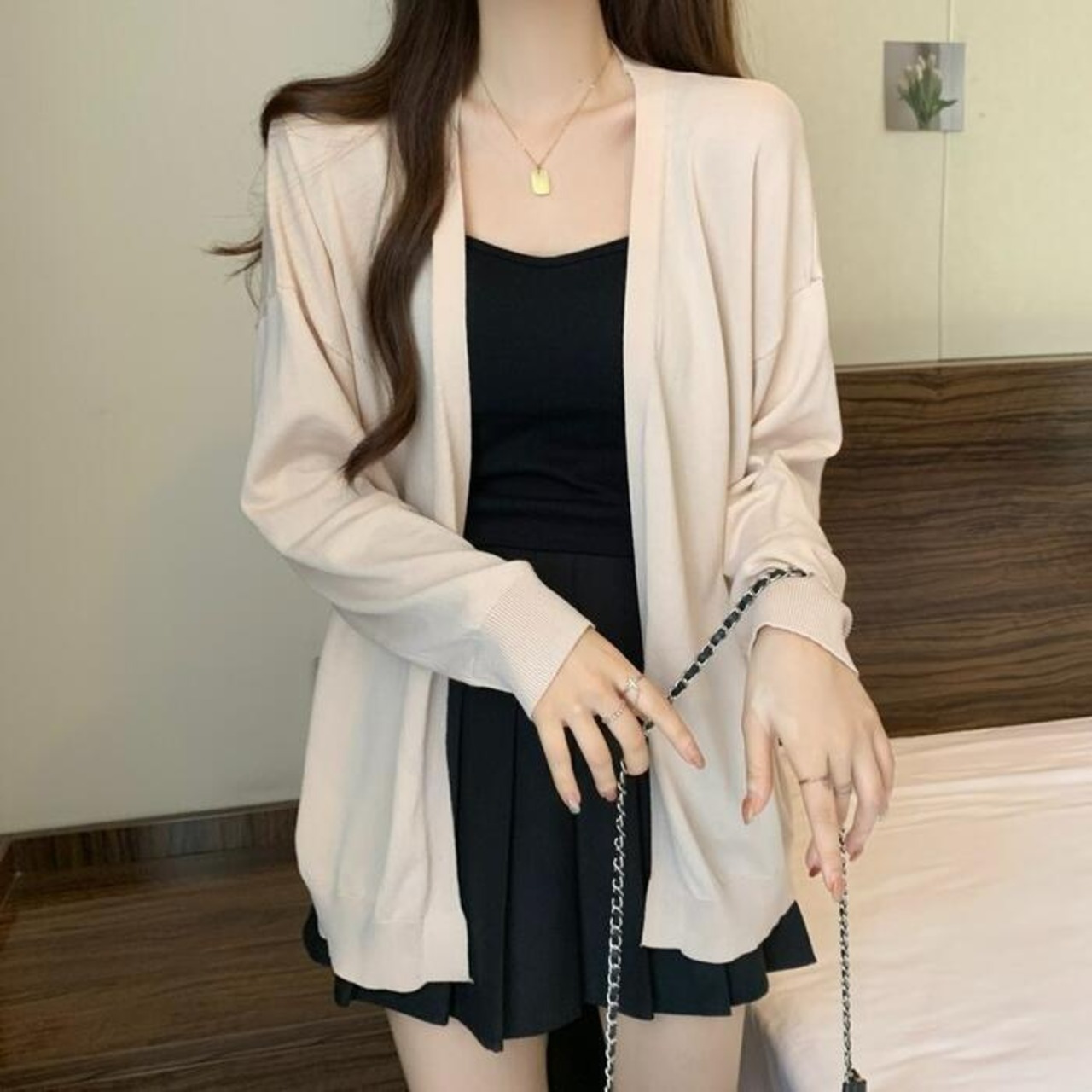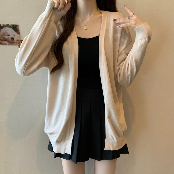 全3色 大きいサイズ 体型カバー トップス カーディガン 羽織り ジャケット カットソー エレガント レディース 大人 可愛い 長袖 きれいめ カジュアル フェミニン おしゃれ シンプル ゆったり 冷房対策 日焼け防止 ベージュ グレー ブラック 黒 春 秋 夏 20代 30代 40代 50代
