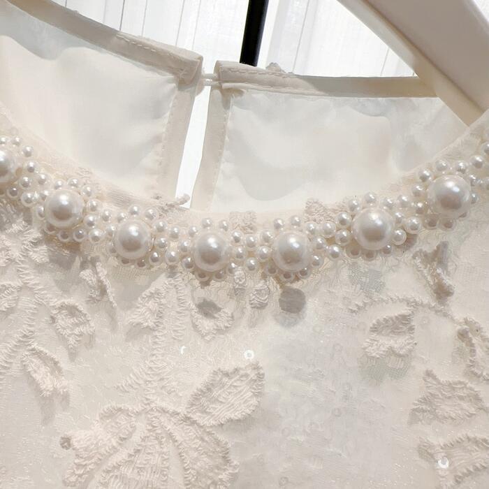 首周りのパールビジューが、上品なアクセントを添えています。