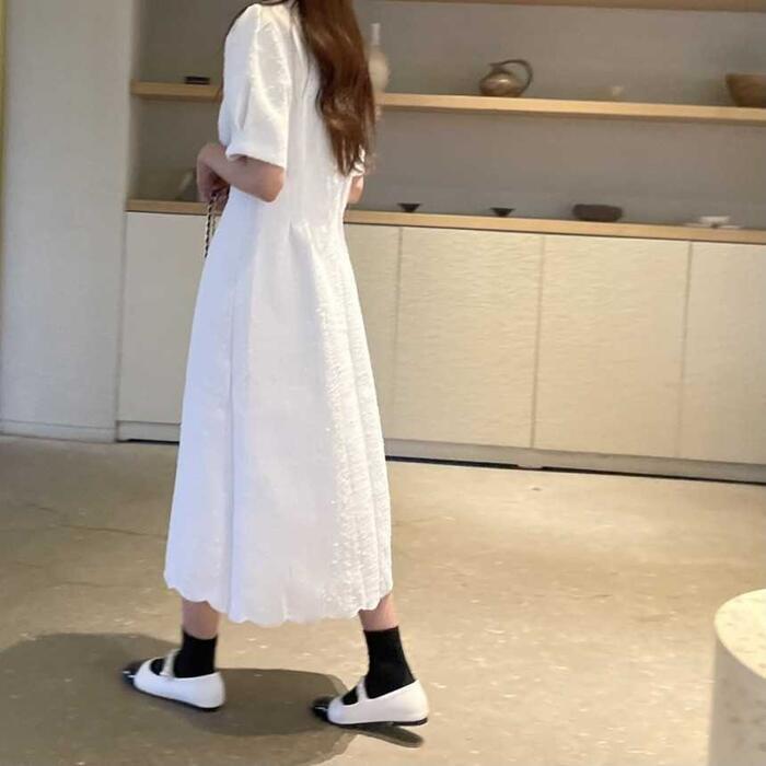 裾がさりげなくスカラップデザインになっているのがポイント。