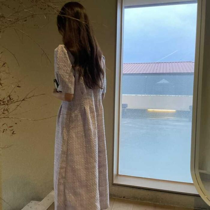 一枚で清潔感あふれるスタイルが作れるツイードワンピース。