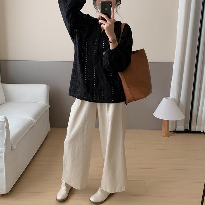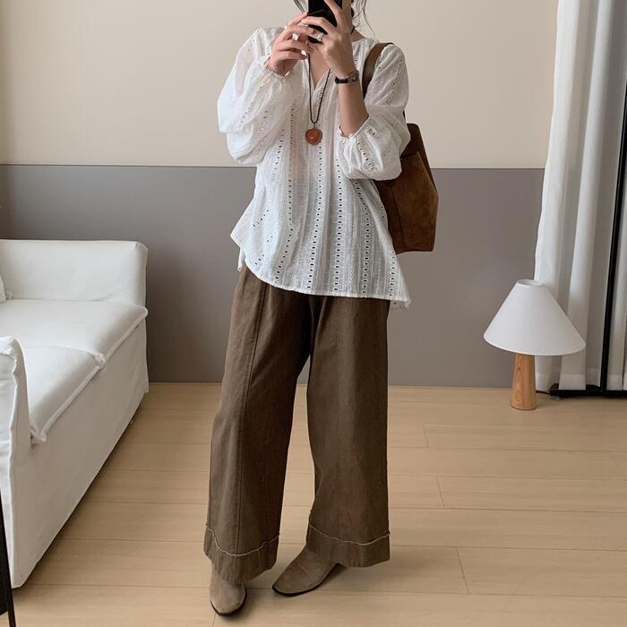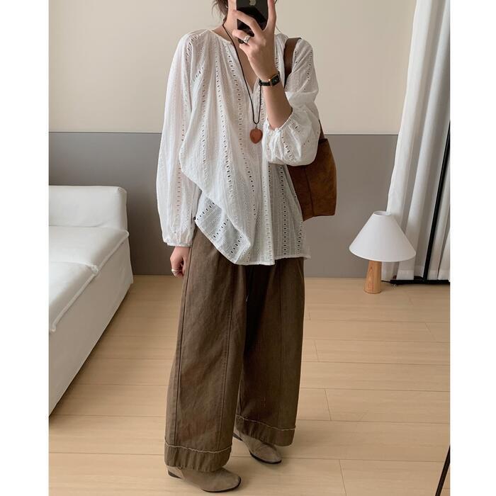 体が泳ぐリラックスシルエットのレースブラウス。