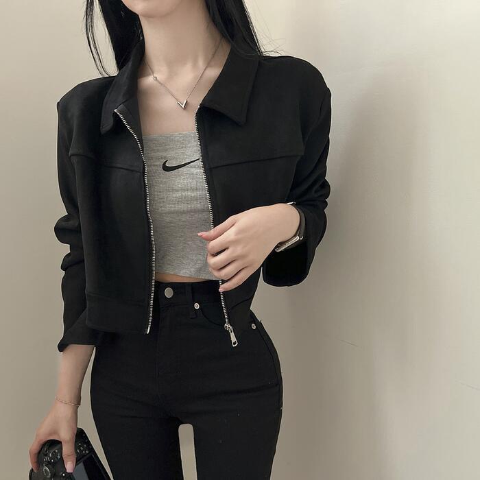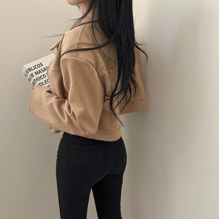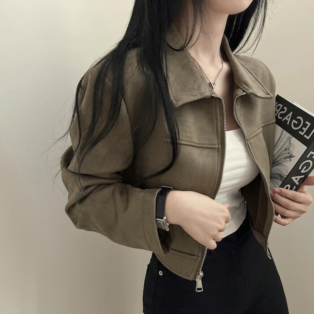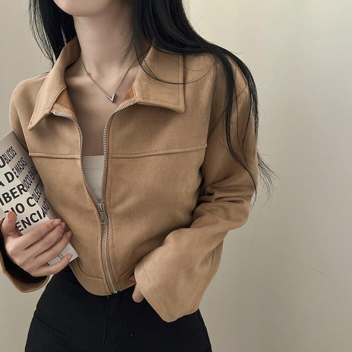 全3色 大きいサイズ 体型カバー ショート丈 クロップド丈 アウター ジャケット コート スエード ジップアップ ブルゾン エレガント レディース 大人 可愛い 長袖 きれいめ カジュアル フェミニン おしゃれ シンプル カーディガン 羽織り 韓国 ベージュ グリーン 緑 ブラック 黒 春 秋 冬 20代 30代 40代 50代