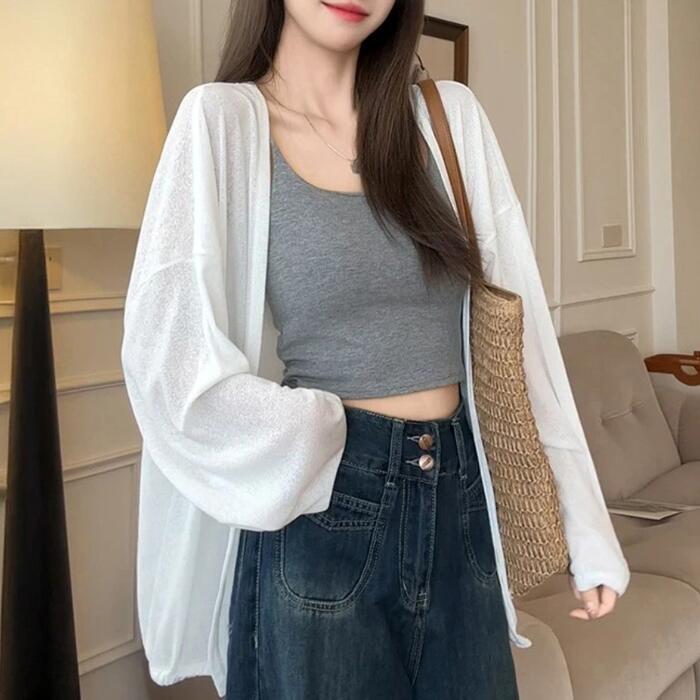 全3色 体型カバー 薄手 日焼け防止 冷房対策 トップス ニット カーディガン ジャケット 羽織り サマーカーディガン エレガント レディース 大人 可愛い 長袖 きれいめ カジュアル フェミニン シンプル おしゃれ 韓国 ゆったり ベージュ ホワイト 白 ブラック 黒 春 秋 夏 20代 30代 40代 50代