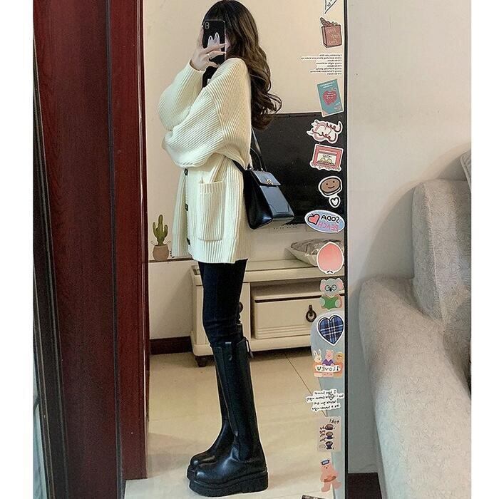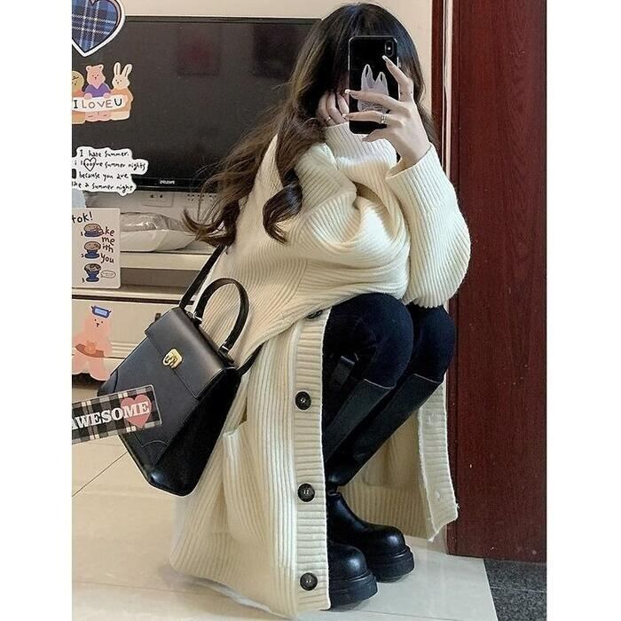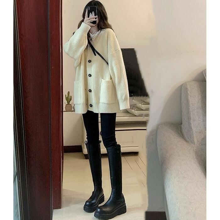 全4色 大きいサイズ 体型カバー トップス ニット カーディガン ジャケット 羽織り セーター アウター エレガント レディース 大人 可愛い 長袖 きれいめ カジュアル フェミニン シンプル おしゃれ 韓国 ゆったり ベージュ ブラウン グレー ブラック 黒 春 秋 冬 20代 30代 40代 50代