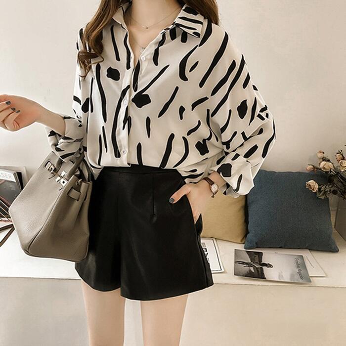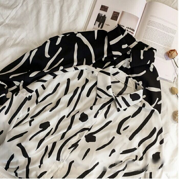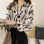 全2色 大きいサイズ 体型カバー トップス ブラウス シャツ プリント エレガント レディース 大人 可愛い 長袖 きれいめ カジュアル フェミニン おしゃれ クラシカル シック モノトーン かっこいい 通勤 オフィス ホワイト 白 ブラック 黒 春 秋 冬 20代 30代 40代 50代