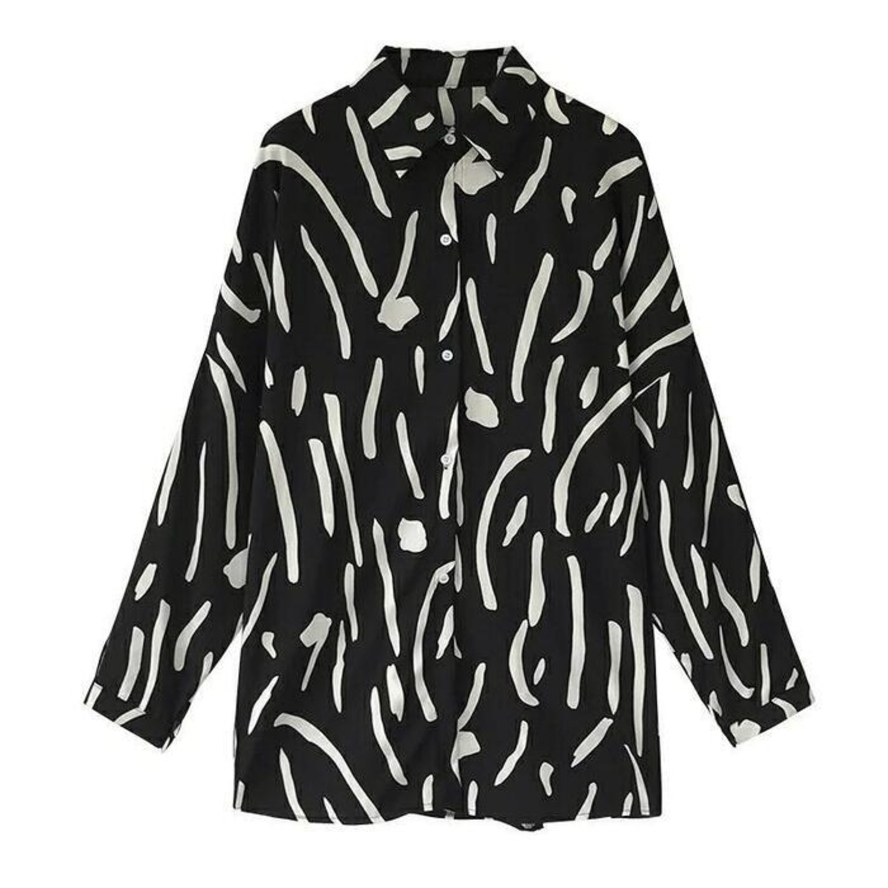 アーティスティックなプリント柄が魅力を放つ長袖シャツ。