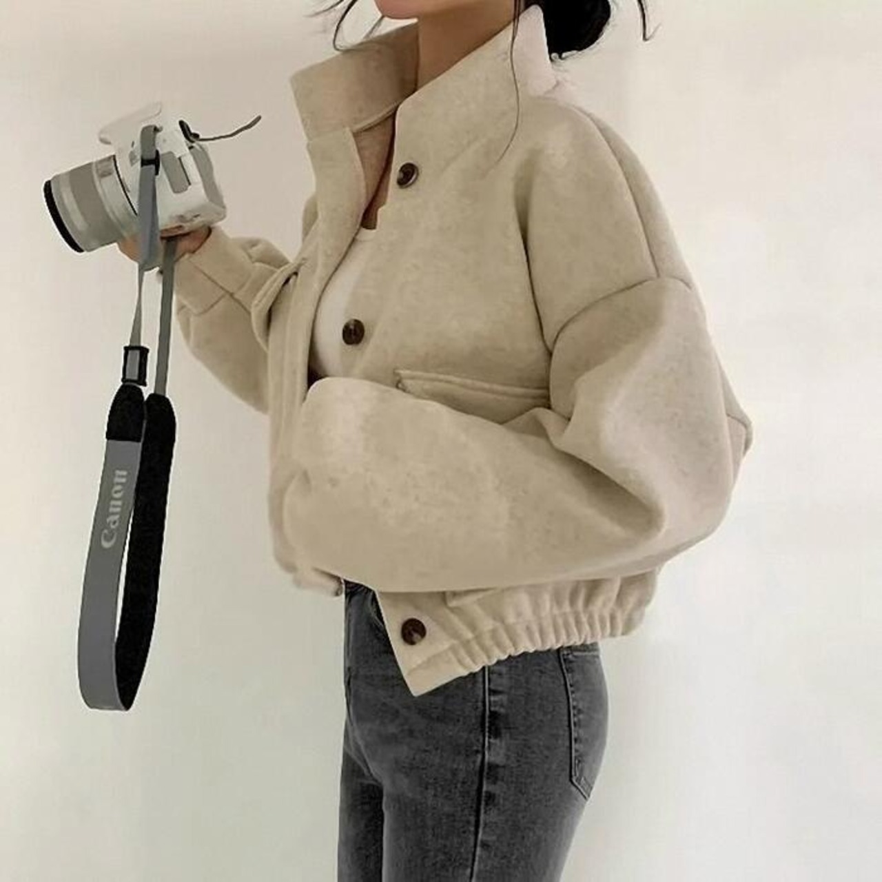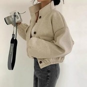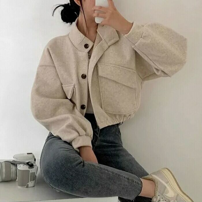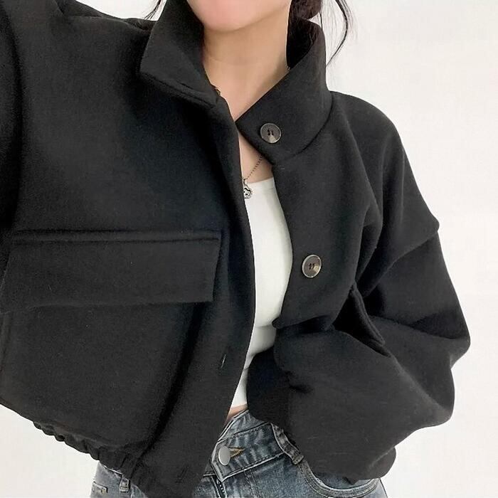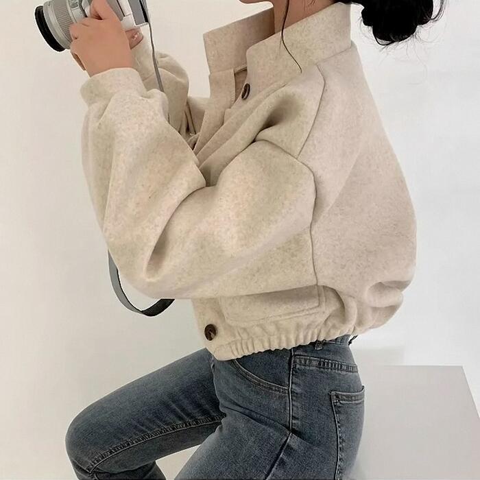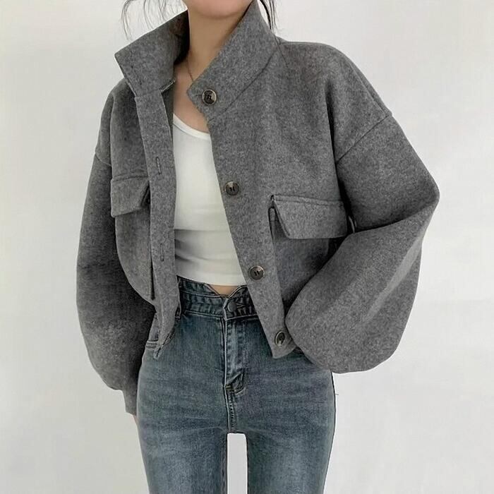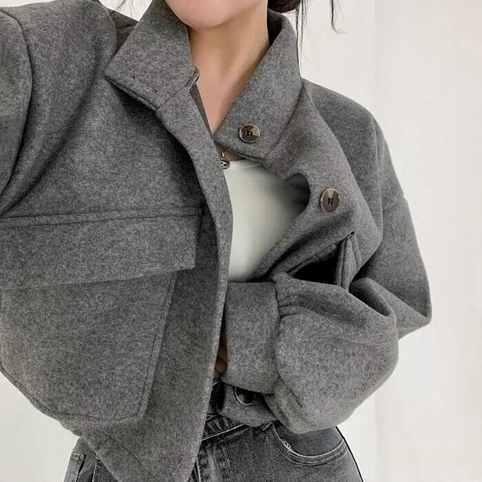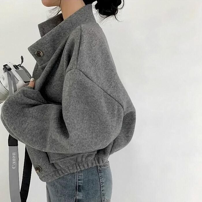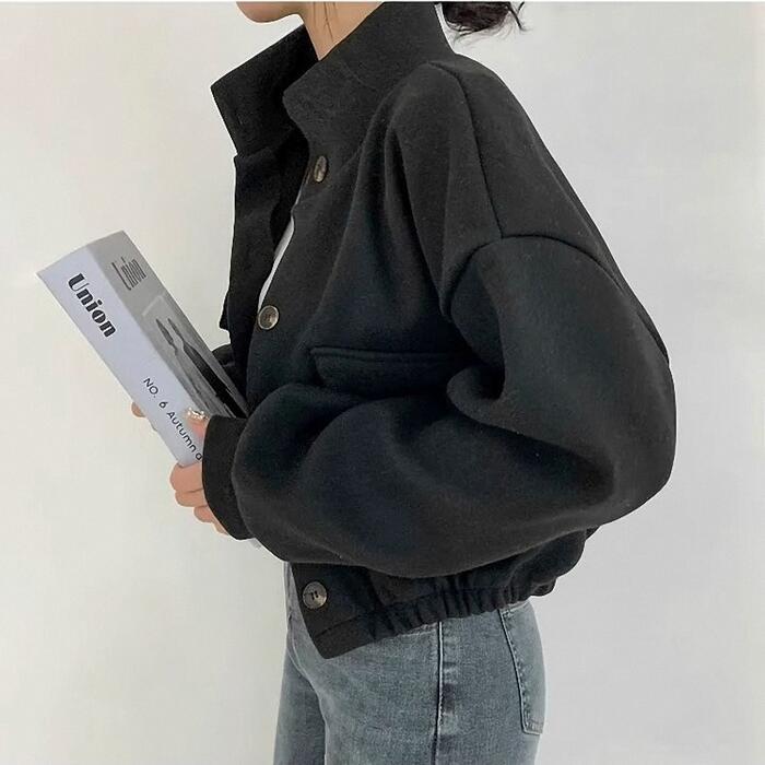 全3色 大きいサイズ 体型カバー ショート丈 クロップド丈 アウター ジャケット コート スタンドカラー ブルゾン エレガント レディース 大人 可愛い 長袖 きれいめ カジュアル フェミニン おしゃれ シンプル カーディガン 羽織り 韓国 ベージュ グレー ブラック 黒 春 秋 冬 20代 30代 40代 50代