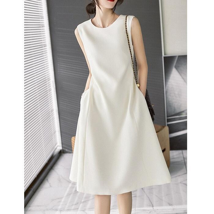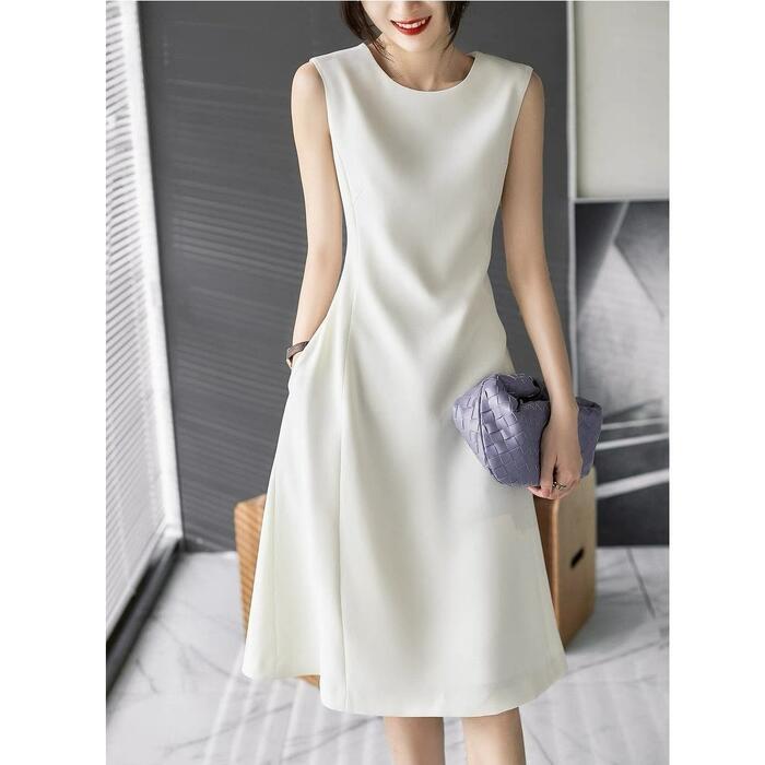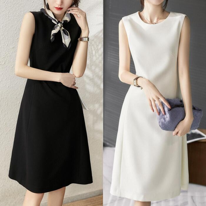 全2色 大きいサイズ 体型カバー パーティー ワンピース ワンピ ドレス レディース エレガント きれいめ カジュアル 大人 可愛い フェミニン ひざ丈 ミディ丈 Aライン ノースリーブ シンプル オケージョン 通勤 オフィス フォーマル ホワイト 白 ブラック 黒 春 夏 秋 冬 20代 30代 40代 50代
