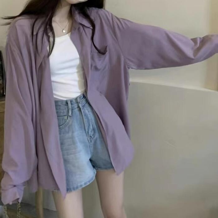 全5色 大きいサイズ 体型カバー 羽織り トップス ブラウス シャツ 無地 エレガント レディース 大人 可愛い きれいめ カジュアル フェミニン 長袖 おしゃれ シンプル 通勤 オフィス ベーシック パープル 紫 ベージュ ブルー 青 ホワイト 白 ブラック 黒 春 秋 冬 20代 30代 40代 50代