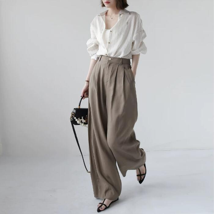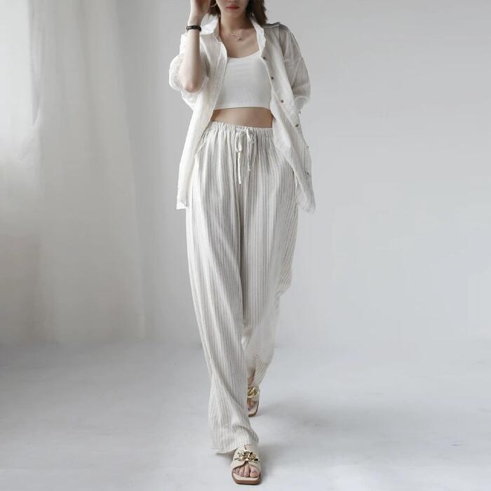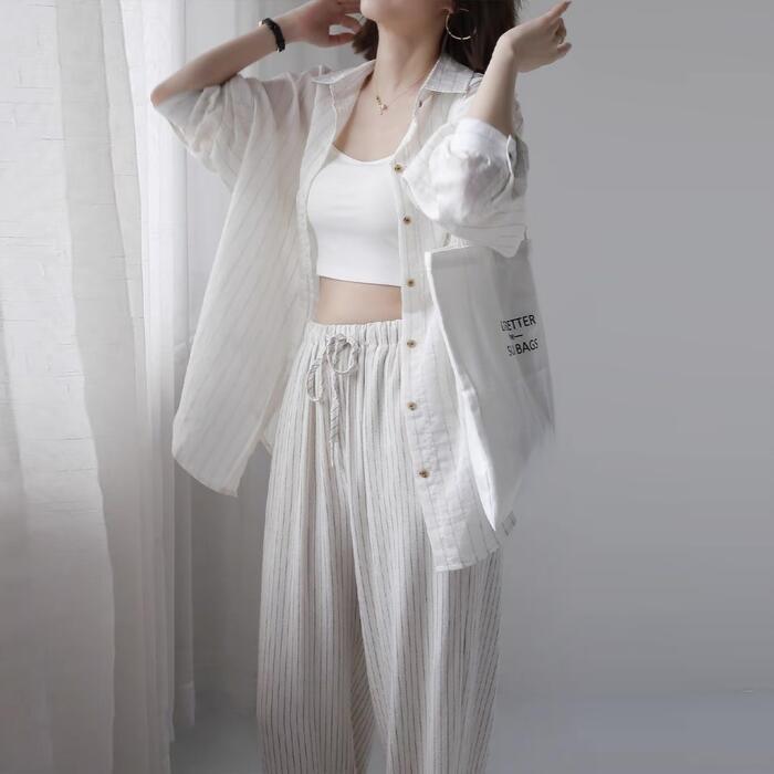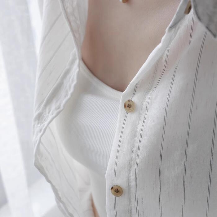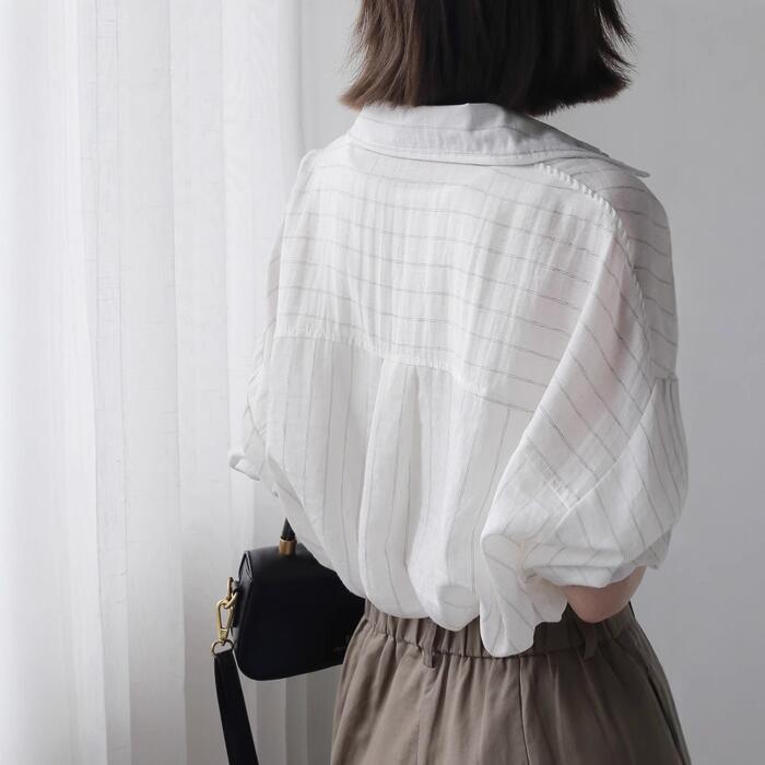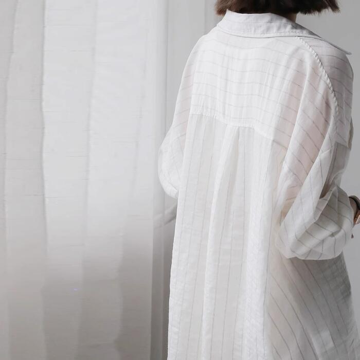 ラフなオーバーサイズで、さらっと1枚で決まるストライプシャツ。