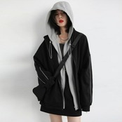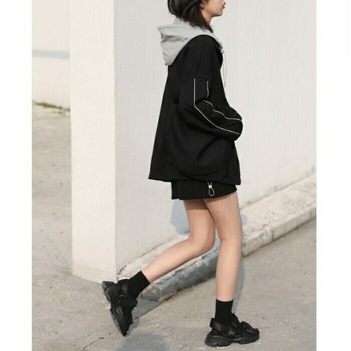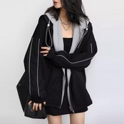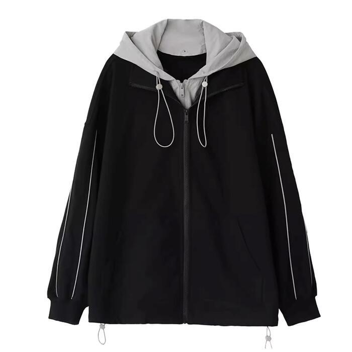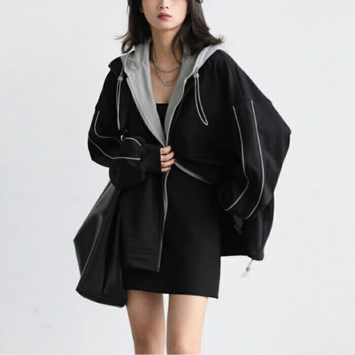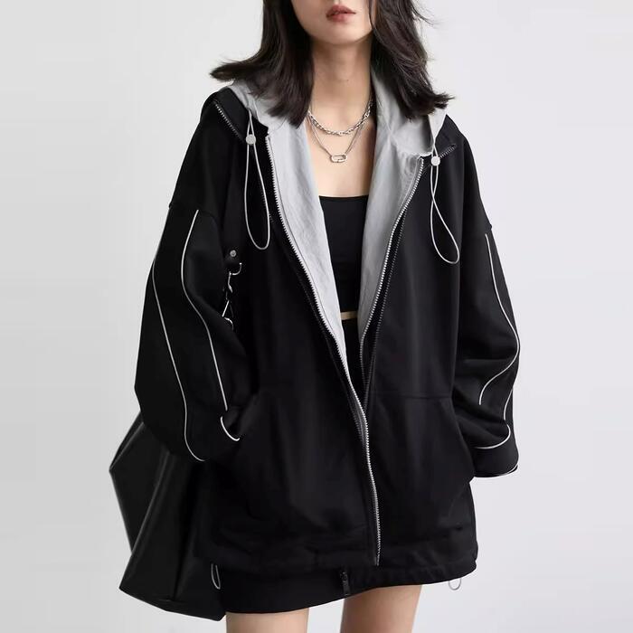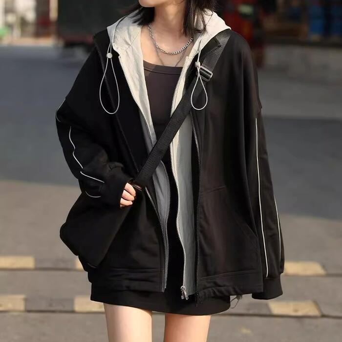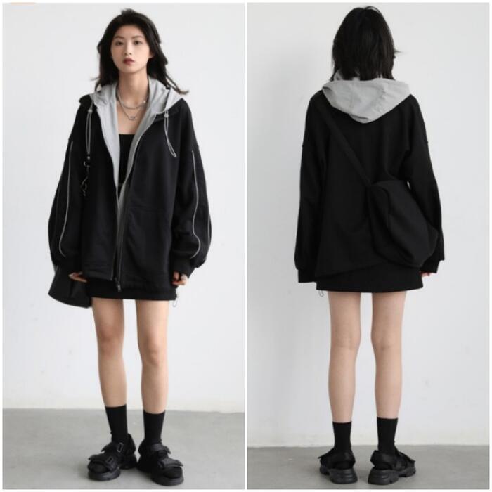 全2種 大きいサイズ 体型カバー オーバーサイズ 裏起毛 配色 異素材ミックス おしゃれ トップス パーカー フーディ ジップアップ ジャケット 羽織り マウンテンパーカー トラックジャケット レディース 大人 可愛い きれいめ カジュアル フェミニン 長袖 シンプル アウトドア スポーティ ブラック 黒 春 秋 冬 20代 30代 40代 50代