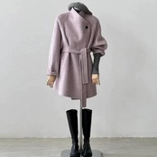 大きいサイズ 体型カバー アウター ジャケット コート ノーカラー ガウン エレガント レディース 大人 可愛い 長袖 きれいめ カジュアル フェミニン おしゃれ シンプル カーディガン 羽織り 韓国 ミドル丈 ミディ丈 ピンク パープル 紫 春 秋 冬 20代 30代 40代 50代