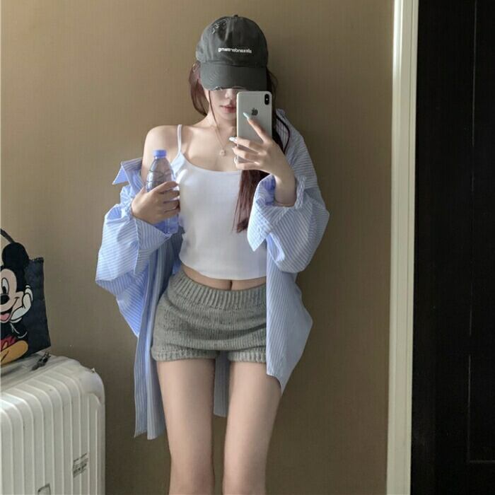 大きいサイズ 体型カバー 冷房対策 日焼け防止 トップス シャツ ブラウス ストライプ エレガント レディース 大人 可愛い きれいめ カジュアル フェミニン 長袖 羽織り おしゃれ オーバーサイズ ビッグシルエット シンプル ゆったり 爽やか 韓国 ブルー 青 春 秋 夏 20代 30代 40代 50代