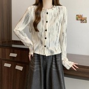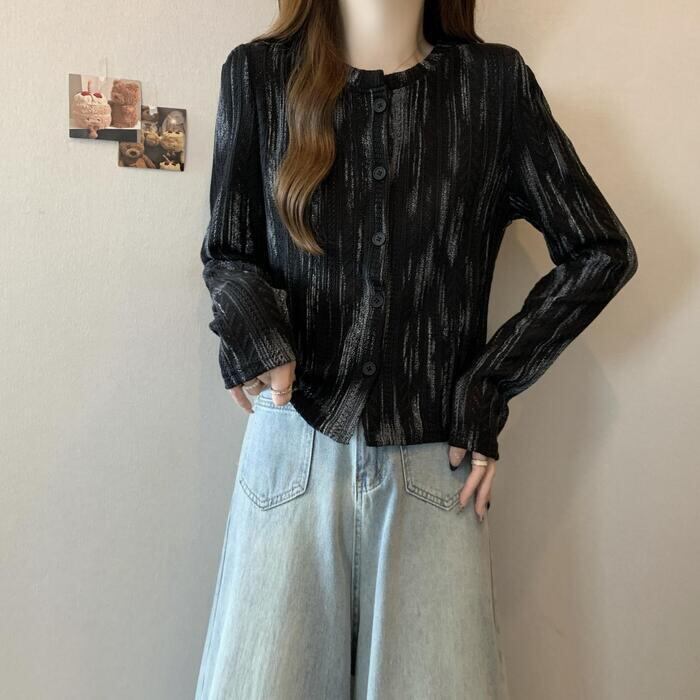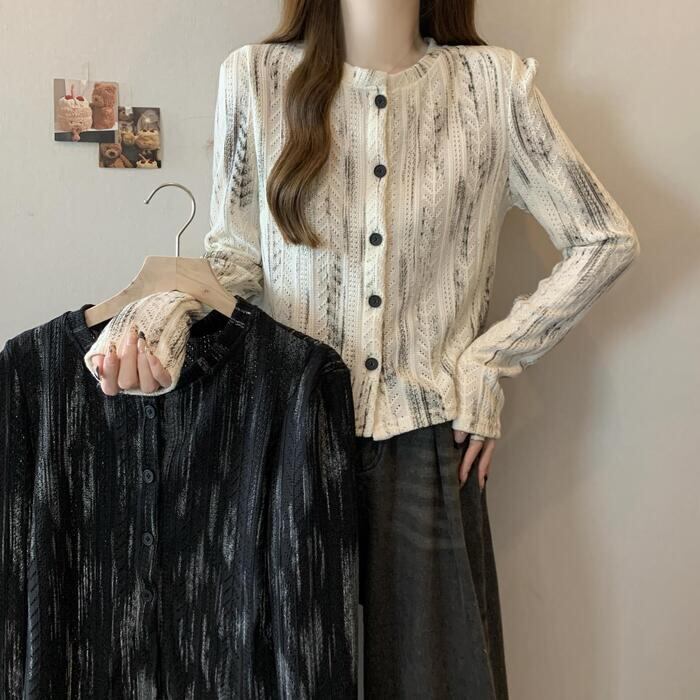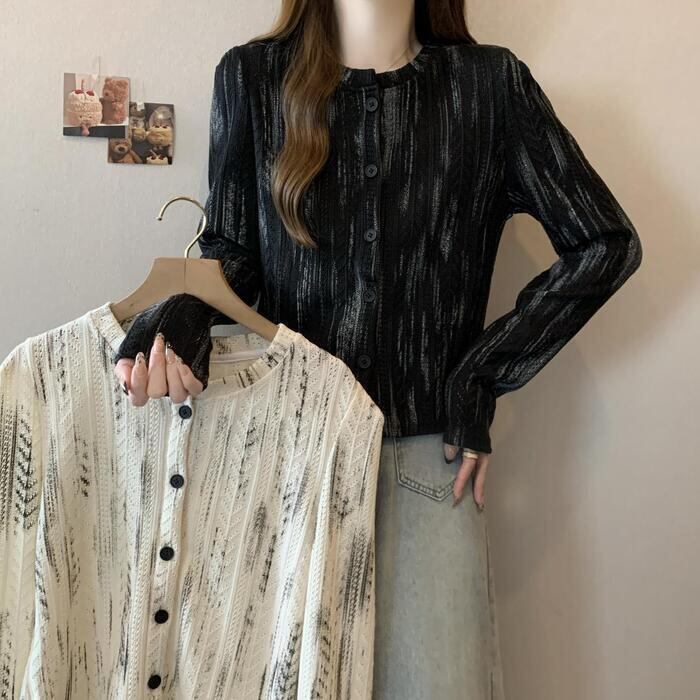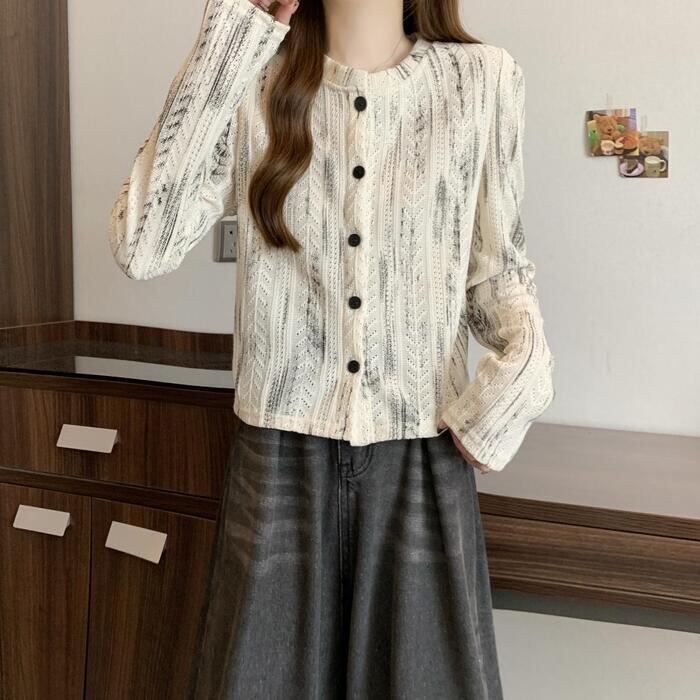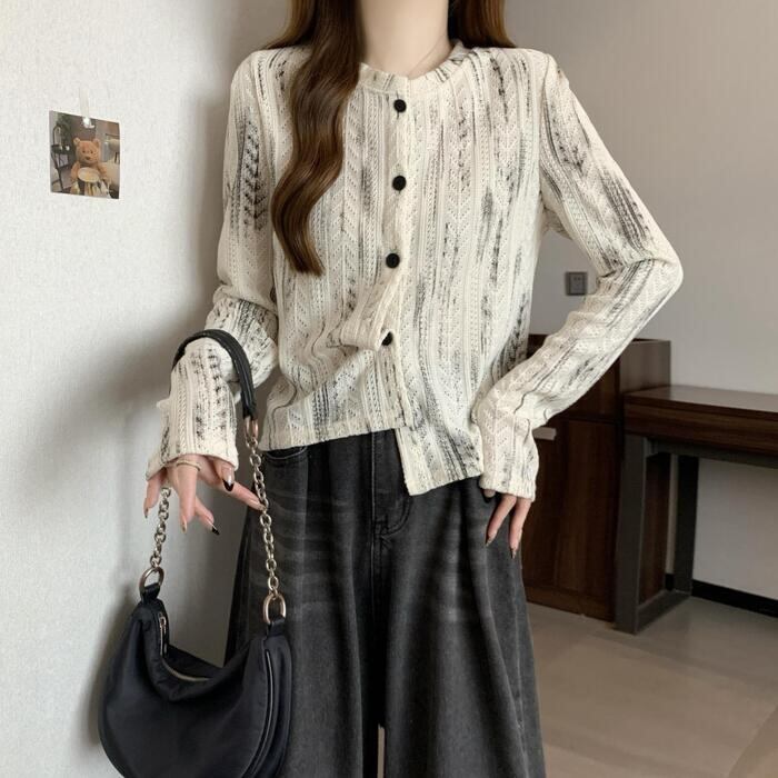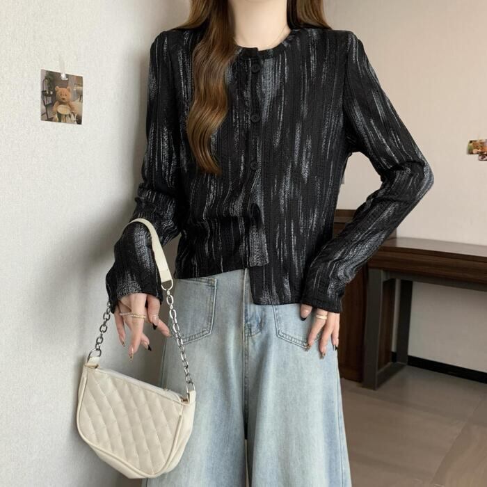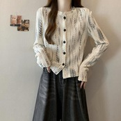 ムラ染め柄が大人な印象のニットトップス。