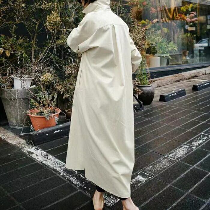 ゆったり着用できるシャツワンピース。