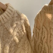 ぱっと目を惹くケーブル編みが印象的なニットプルオーバー。