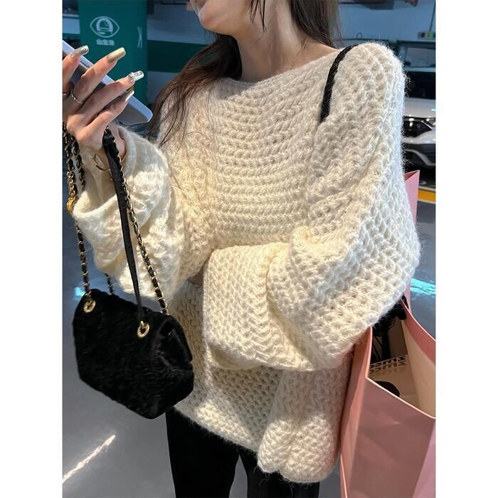ざっくりと編まれた編地が抜け感を演出するニットトップス。
