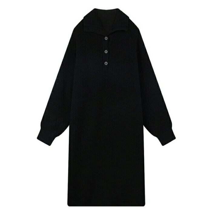 全2色 大きいサイズ 体型カバー タートルネック ハイネック ワンピース ワンピ ドレス 袖あり ニット プルオーバー レディース エレガント きれいめ カジュアル 大人 可愛い フェミニン ミモレ丈 長袖 おしゃれ シンプル 韓国 ゆったり 楽ちん グレー ブラック 黒 春 秋 冬 20代 30代 40代 50代