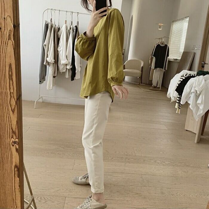 袖口のボリューム感がさり気なくアクセントになったベーシックトップスです。