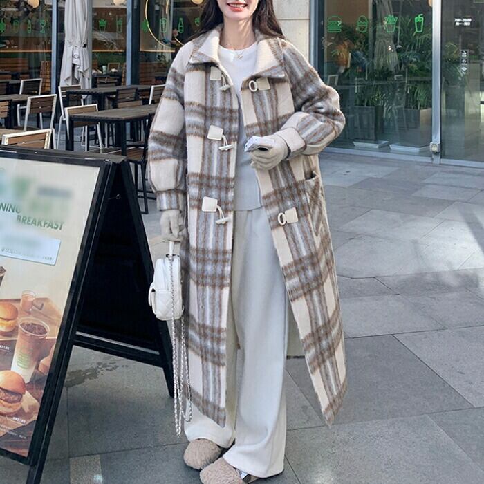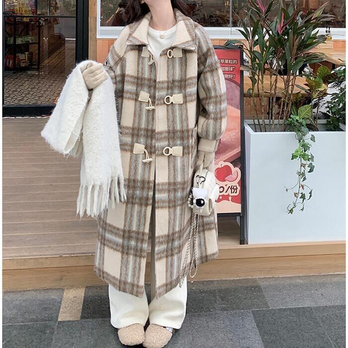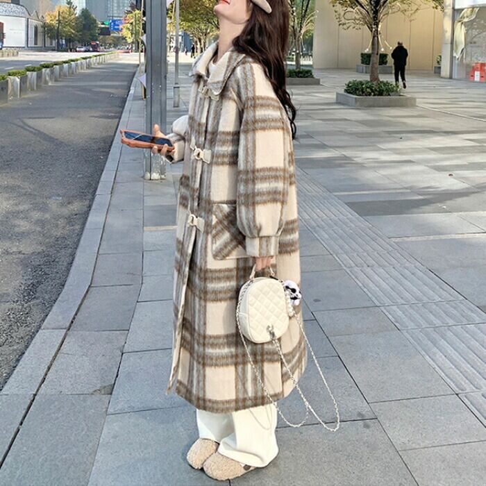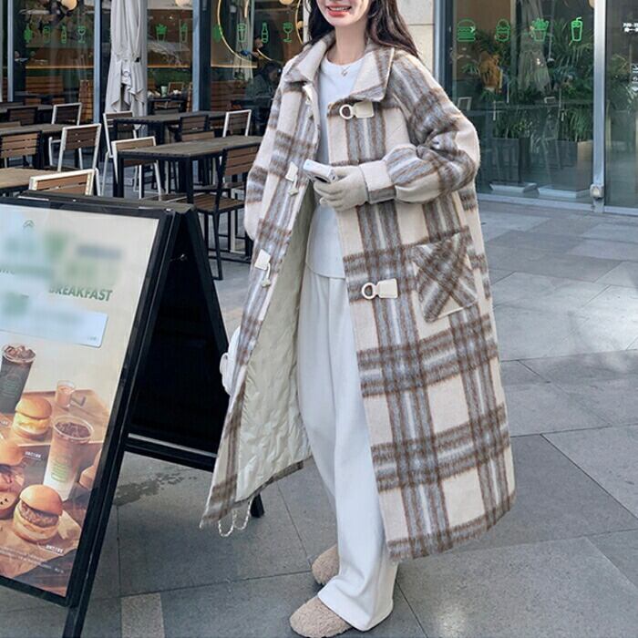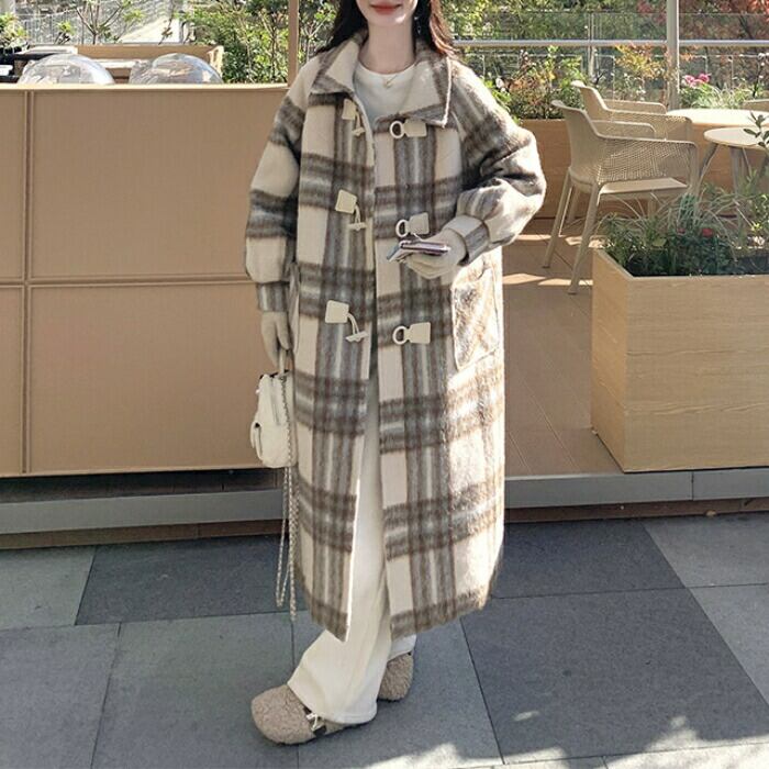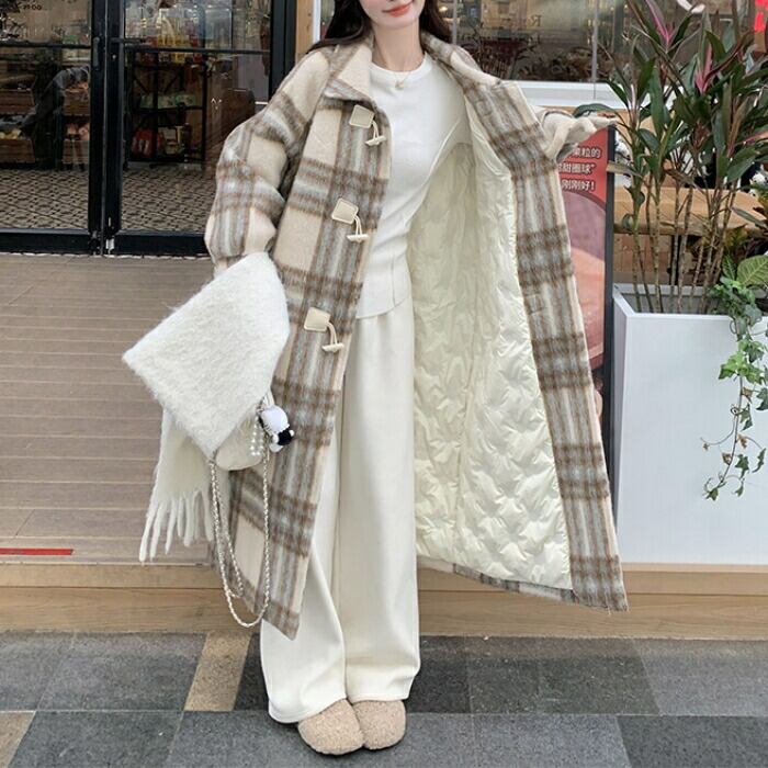 全2種 大きいサイズ 体型カバー フェミニン おしゃれ トラッド アウター コート ジャケット ダッフルコート レディース きれいめ カジュアル 大人可愛い 春 秋 冬 チェック 中綿 厚手 ロングコート 長袖 韓国 ゆったり ベージュ 20代 30代 40代 50代 S M L XL