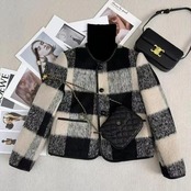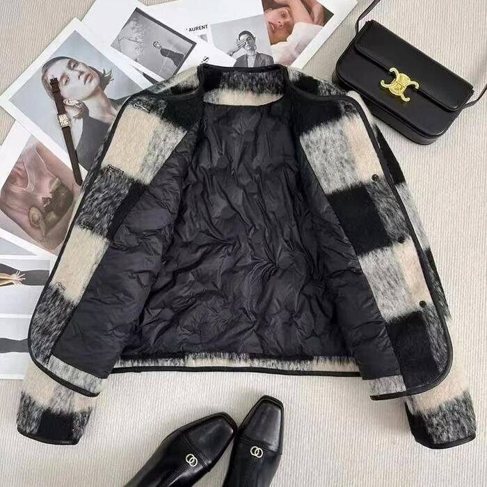 軽くて温かな中綿入りのチェック柄シャギージャケット。