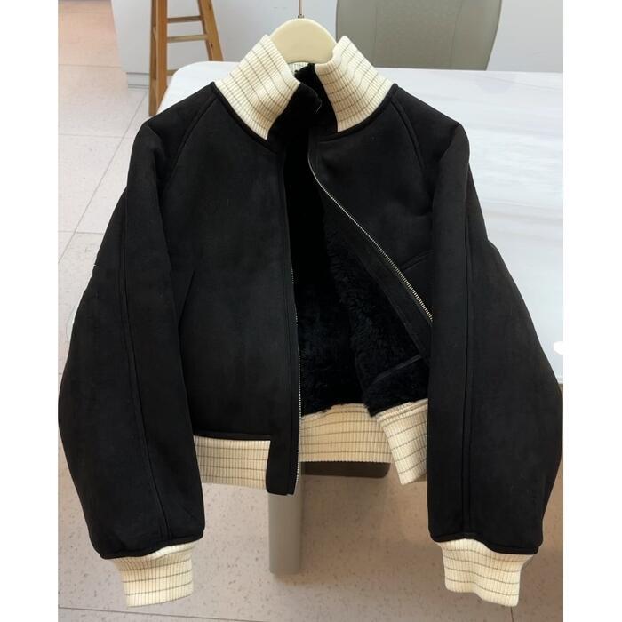 大きいサイズ 体型カバー フェミニン スポーティー シンプル アウター ブルゾン コート ジャケット ジャンパー レディース きれいめ カジュアル 大人可愛い 春 秋 冬 ボア 裏起毛 スタンドカラー 長袖 ショート丈 ブラック 黒 20代 30代 40代 50代 S M L XL