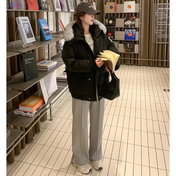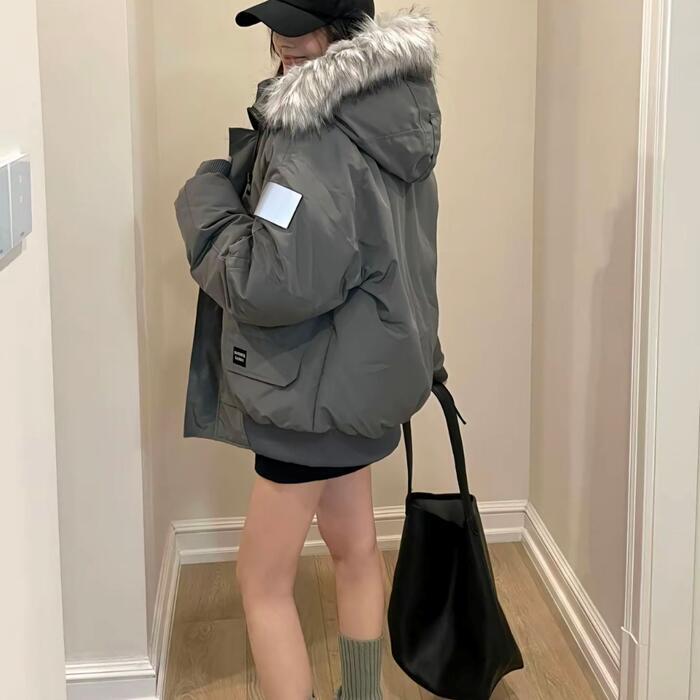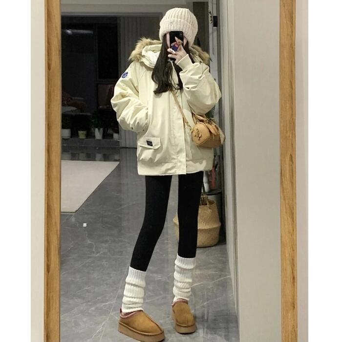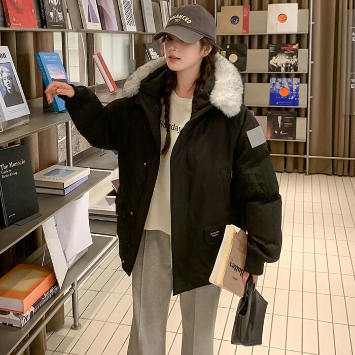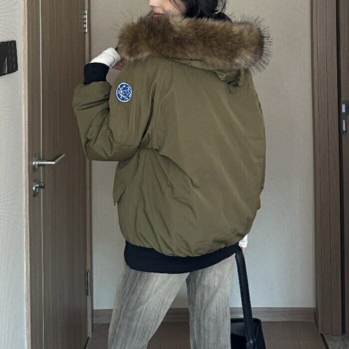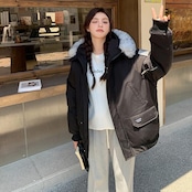 中綿入りで、冬本番も暖かく着用できるファー付きジャケット。