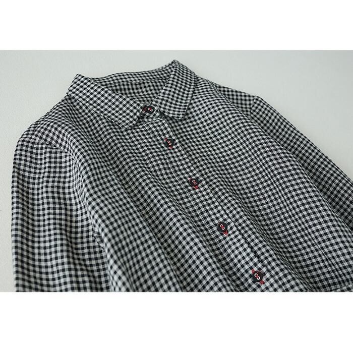 綿麻で着心地良いギンガムチェックのシャツワンピース。