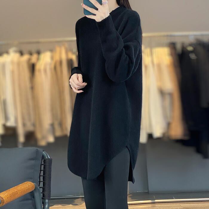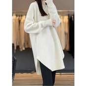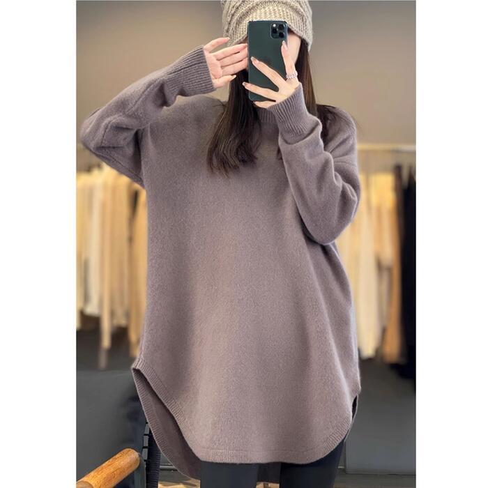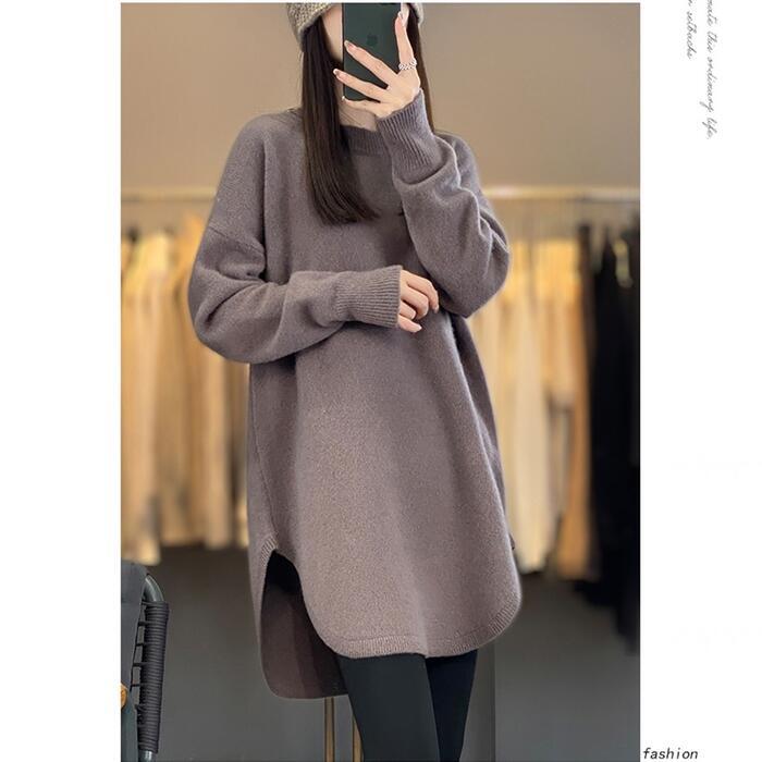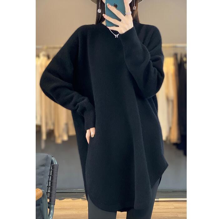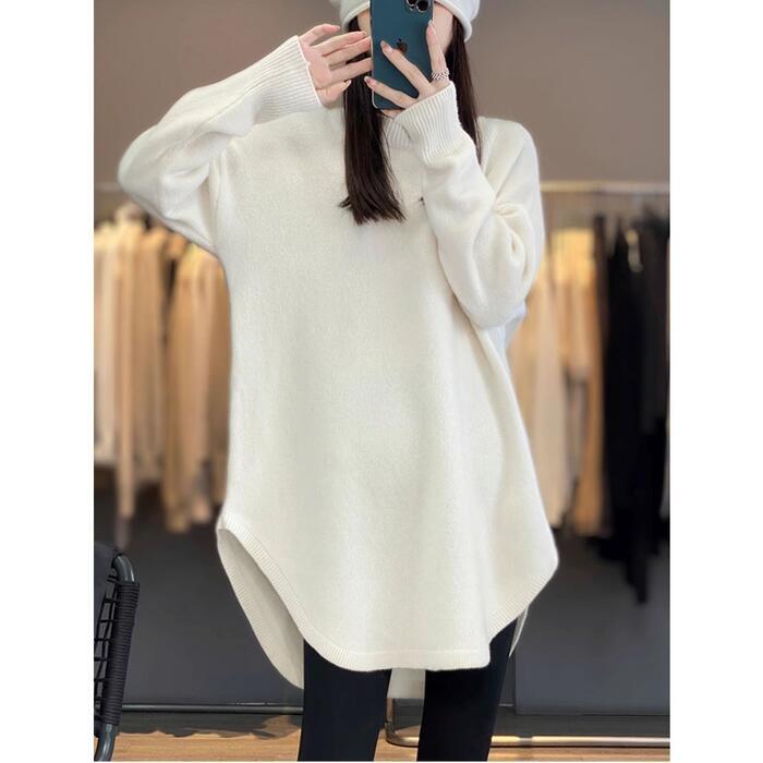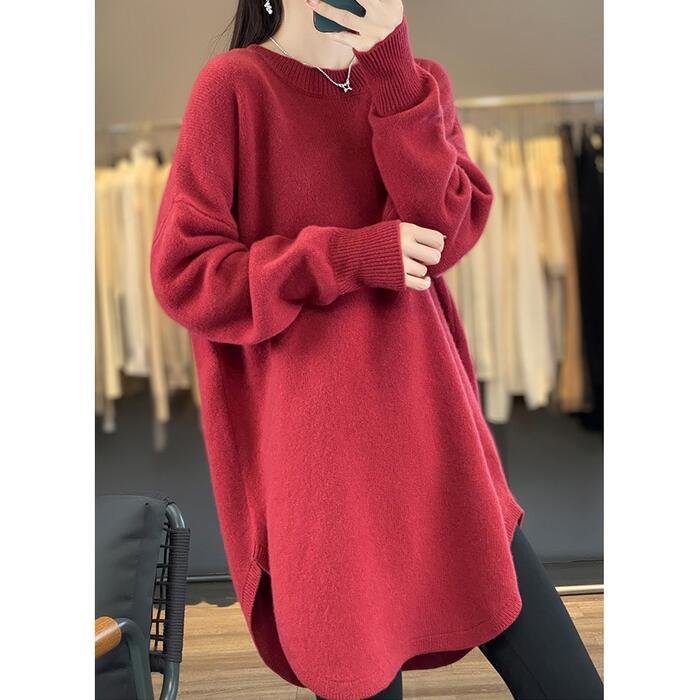 全4色 大きいサイズ 体型カバー エレガント フェミニン おしゃれ ナチュラル シンプル トップス ニット セーター レディース きれいめ カジュアル 大人可愛い 春 秋 冬 チュニック 長袖 ラウンドヘム レイヤード レッド 赤 ホワイト 白 ベージュ ブラック 黒 20代 30代 40代 50代 M L XL 2XL 3XL 4XL