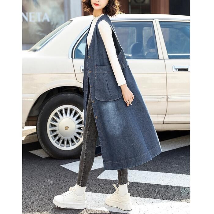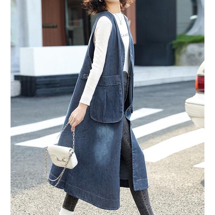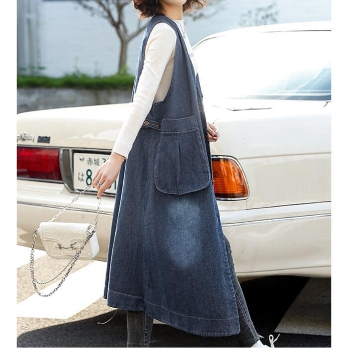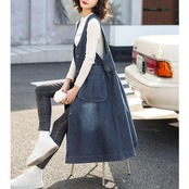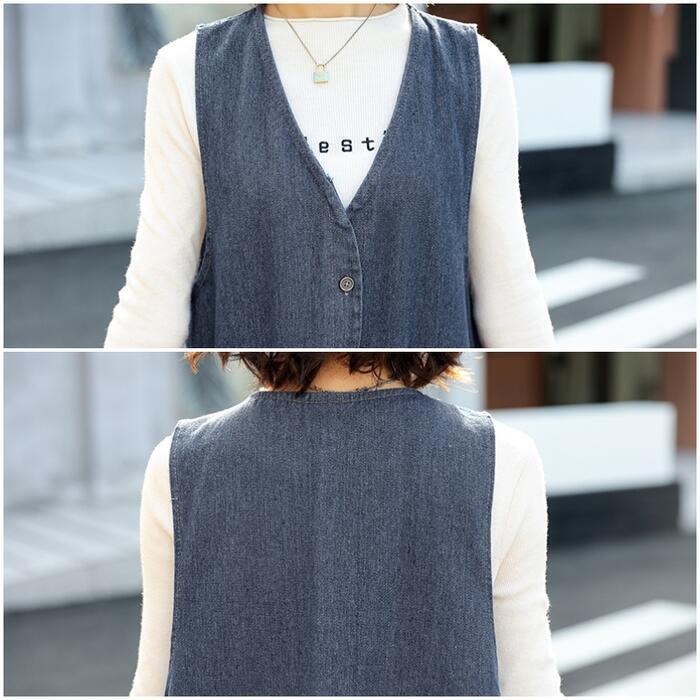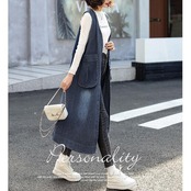 大きいサイズ 体型カバー フェミニン シンプル おしゃれ ワンピース ワンピ ドレス ジャンパースカート ジレ レディース きれいめ カジュアル 大人可愛い 春 夏 秋 冬 ノースリーブ デニム ひざ丈 ベスト 羽織り レイヤード 青 ブルー 20代 30代 40代 50代 S M L XL 2XL 3XL